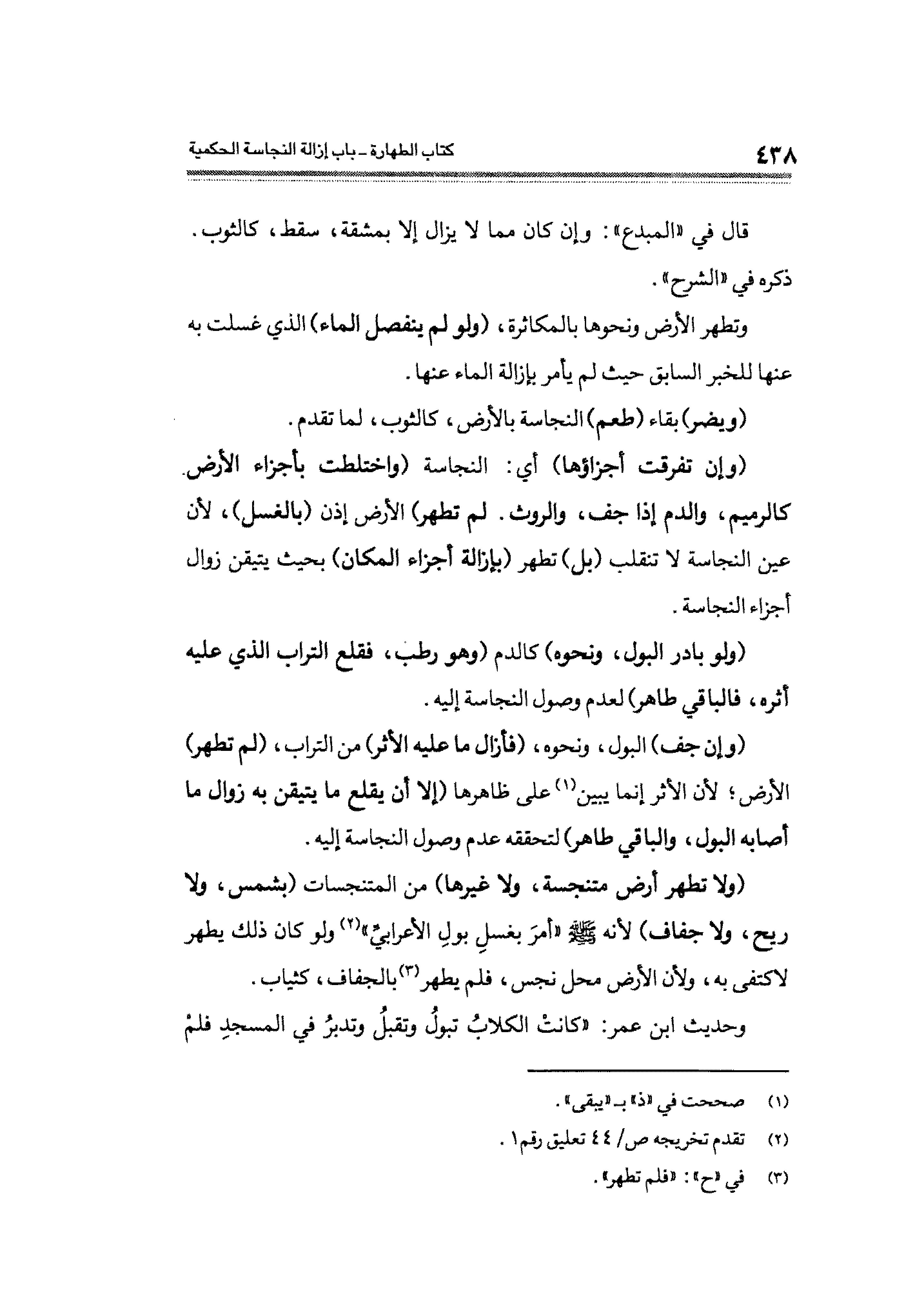 وحديث ابن عمر: " كانتْ الكلابُ تبولُ وتقبلُ وتدبرُ في المسجدِ فلمْ