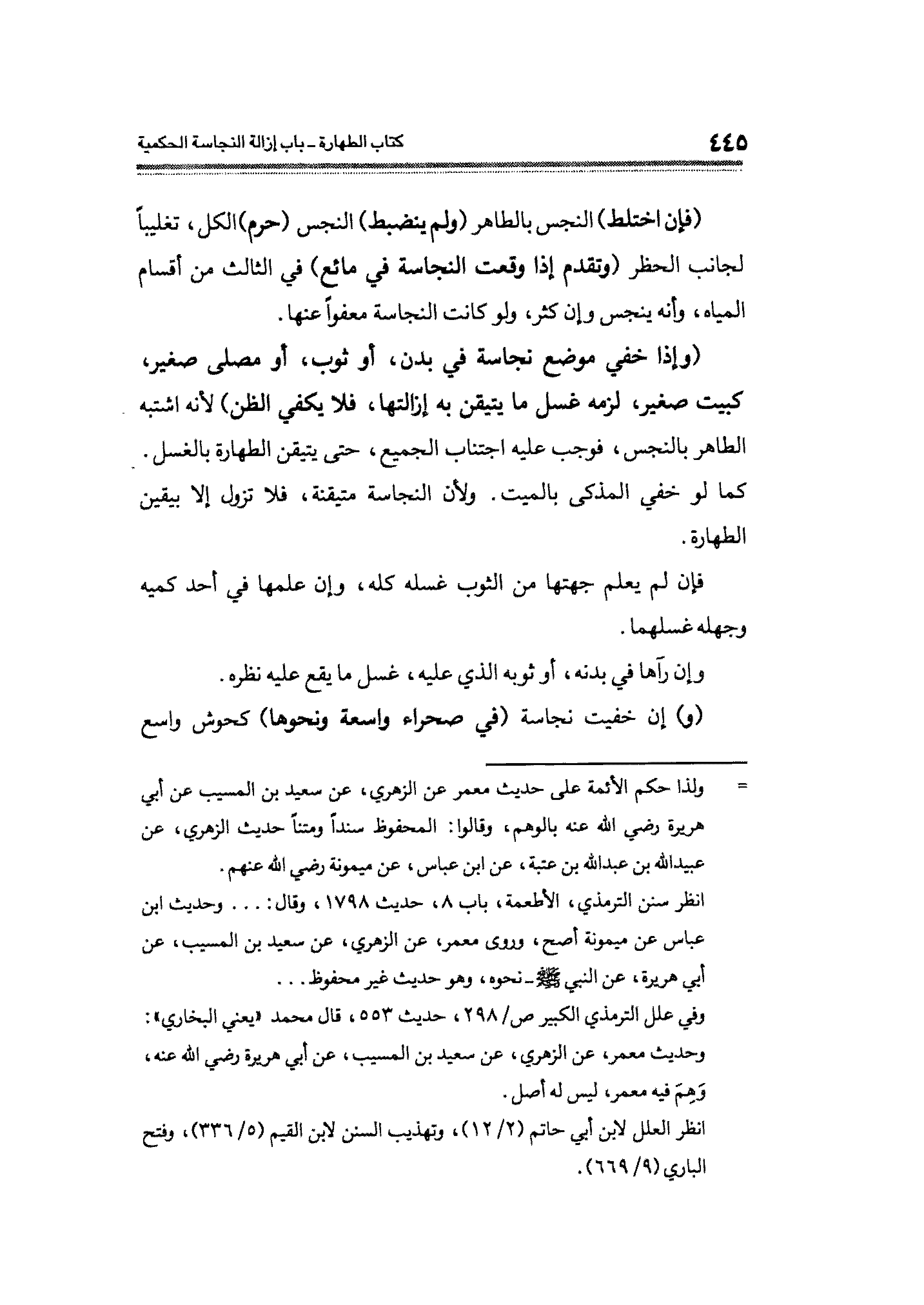 = ولذا حكم الأئمة على حديث معمر عن الزهري، عن سعيد بن المسيب عن أبي هريرة رضي الله عنه بالوهم، وقالوا: المحفوظ سندًا ومتنًا حديث الزهري، عن عبيد الله بن عبد الله بن عتبة، عن ابن عباس، عن ميمونة رضي الله عنهم.