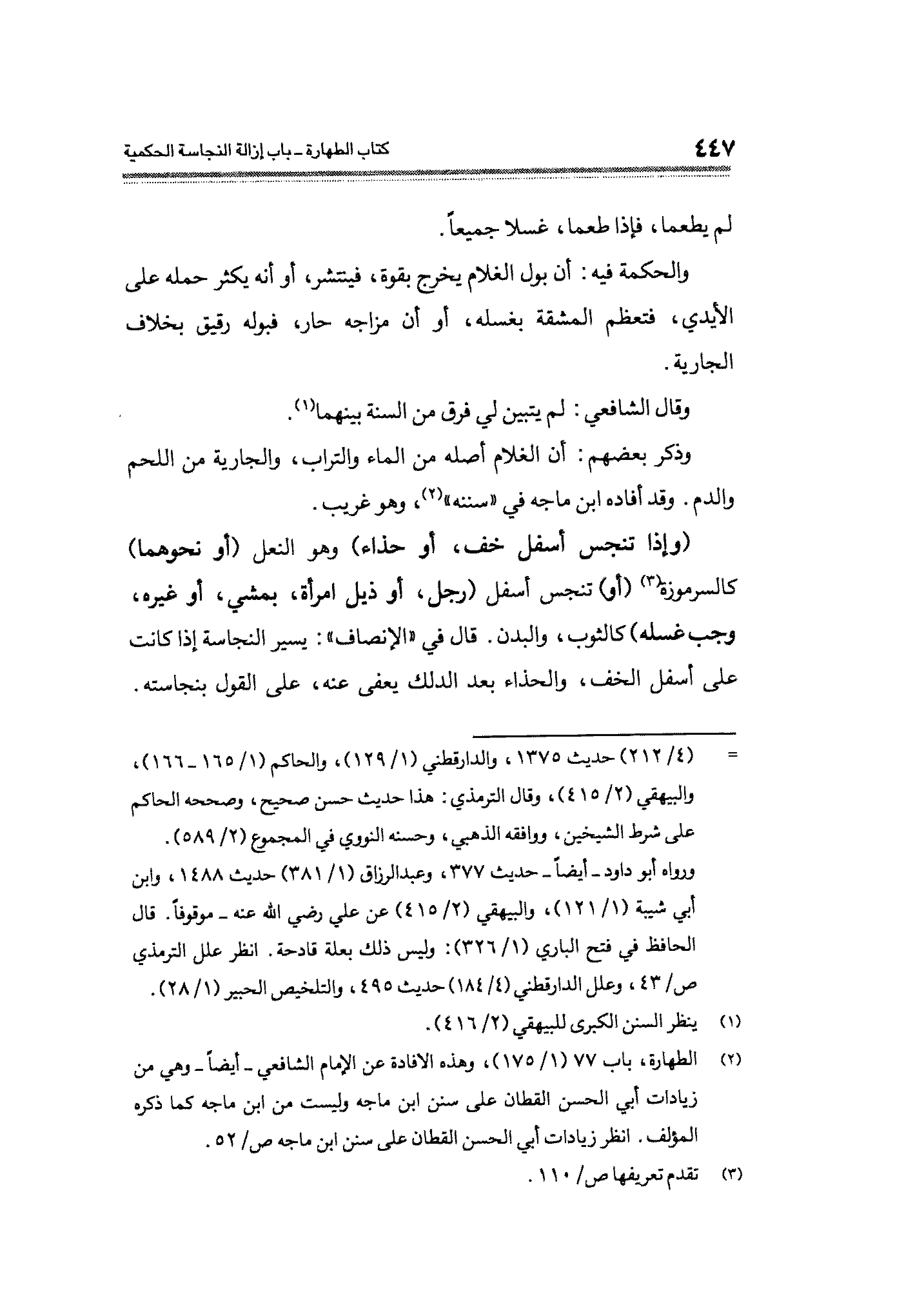 (¬٢) الطهارة، باب ٧٧ (١/ ١٧٥)، وهذه الإفادة عن الإمام الشافعي - أيضًا - وهي من زيادات أبي الحسن القطان على سنن ابن ماجه وليست من ابن ماجه كما ذكره المؤلف. انظر زيادات أبي الحسن القطان على سنن ابن ماجه ص/ ٥٢.
