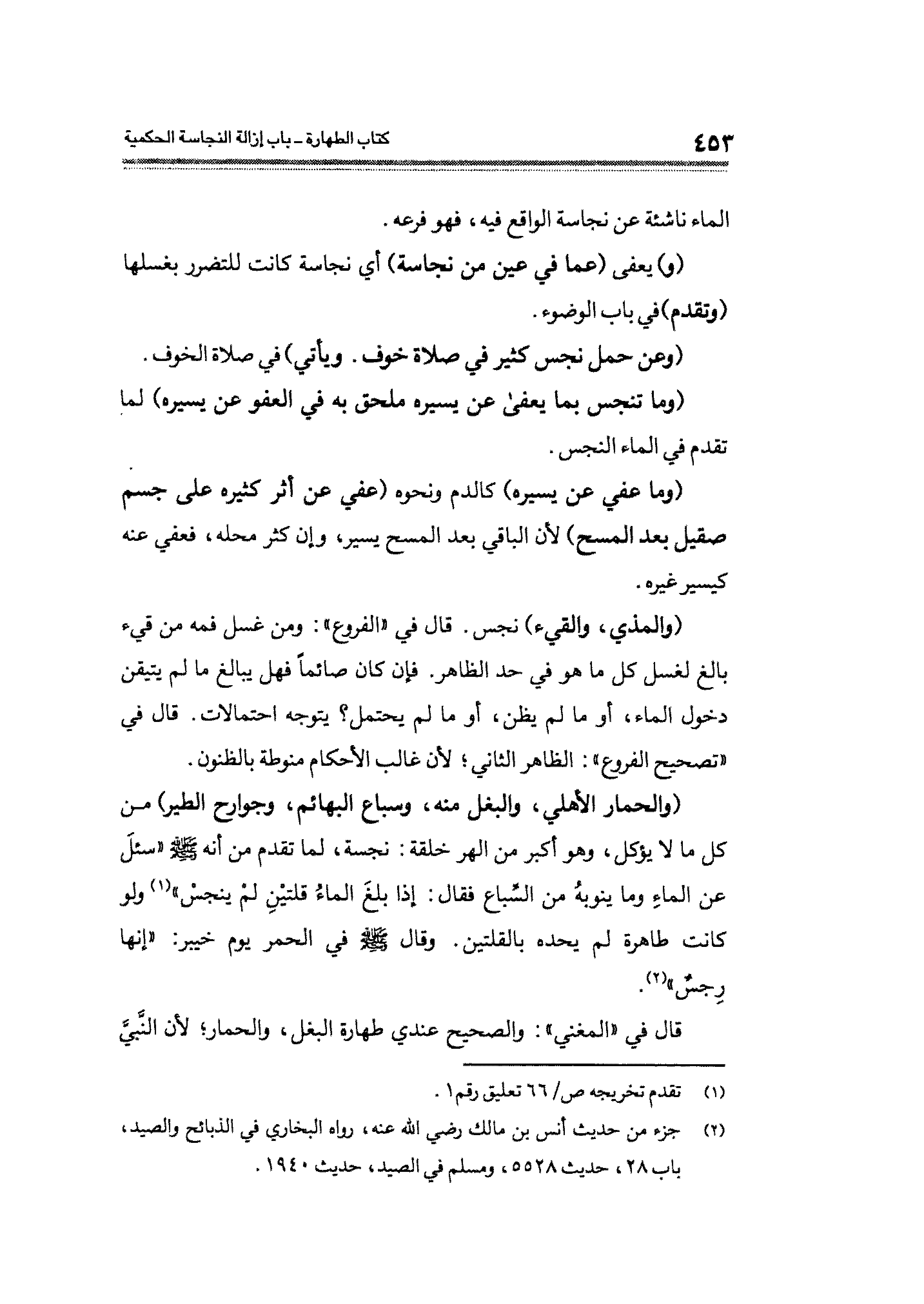 قال فى "المغنى": والصحيح عندى طهارة البغل، والحمار؛ لأن النَّبيَّ