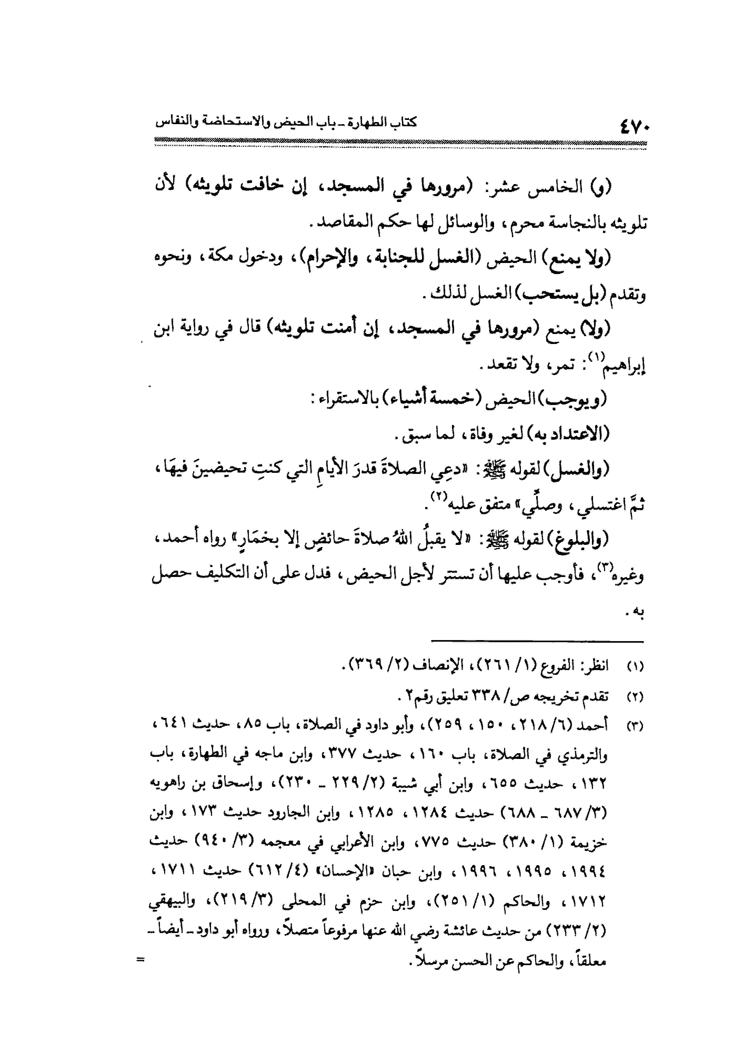 (¬١) انظر: الفروع (١/ ٢٦١)، الإنصاف (١/ ٣٦٩).