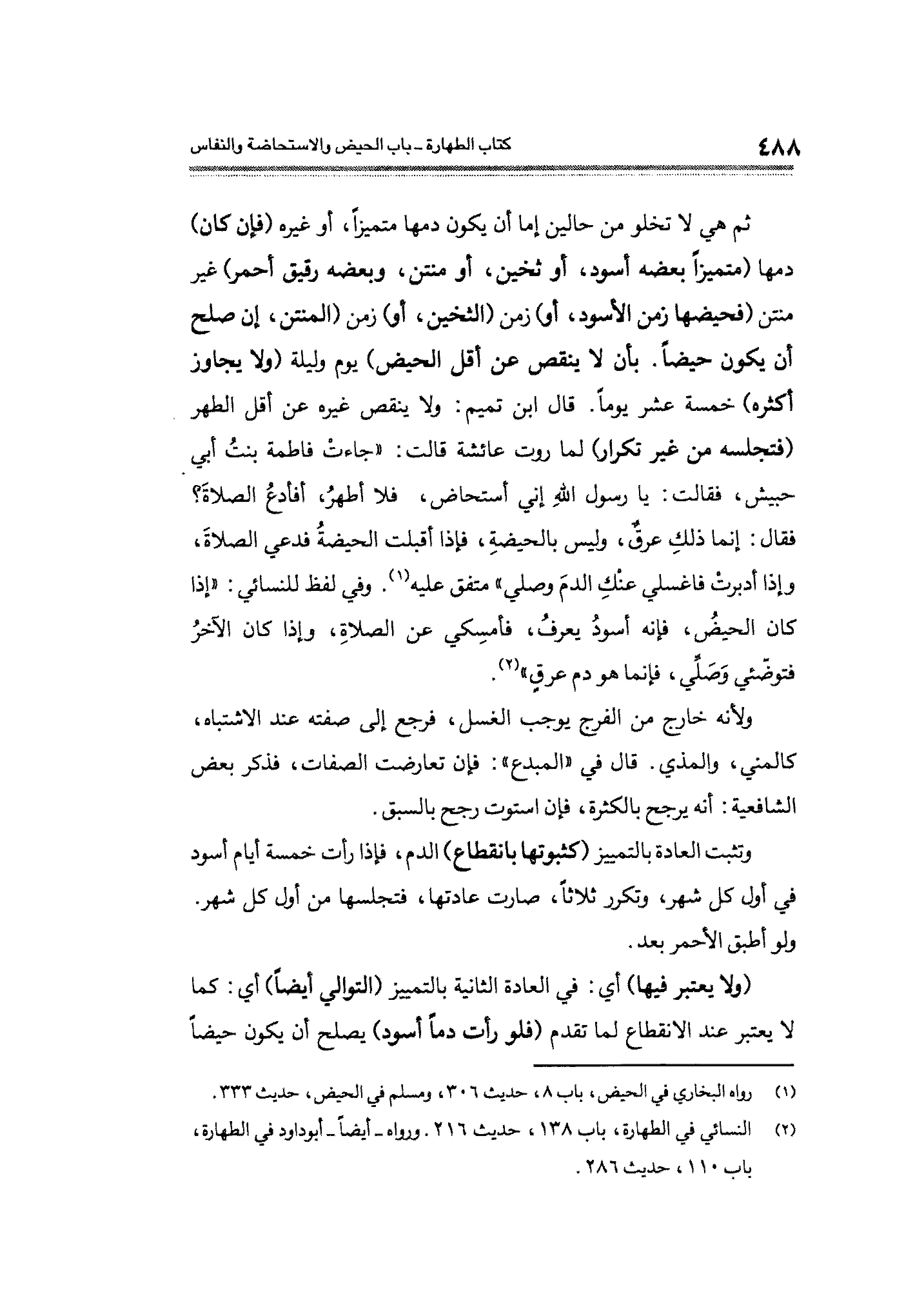 (¬١) رواه البخاري في الحيض، باب ٨، حديث ٣٠٦، ومسلم في الحيض، حديث ٣٣٣.