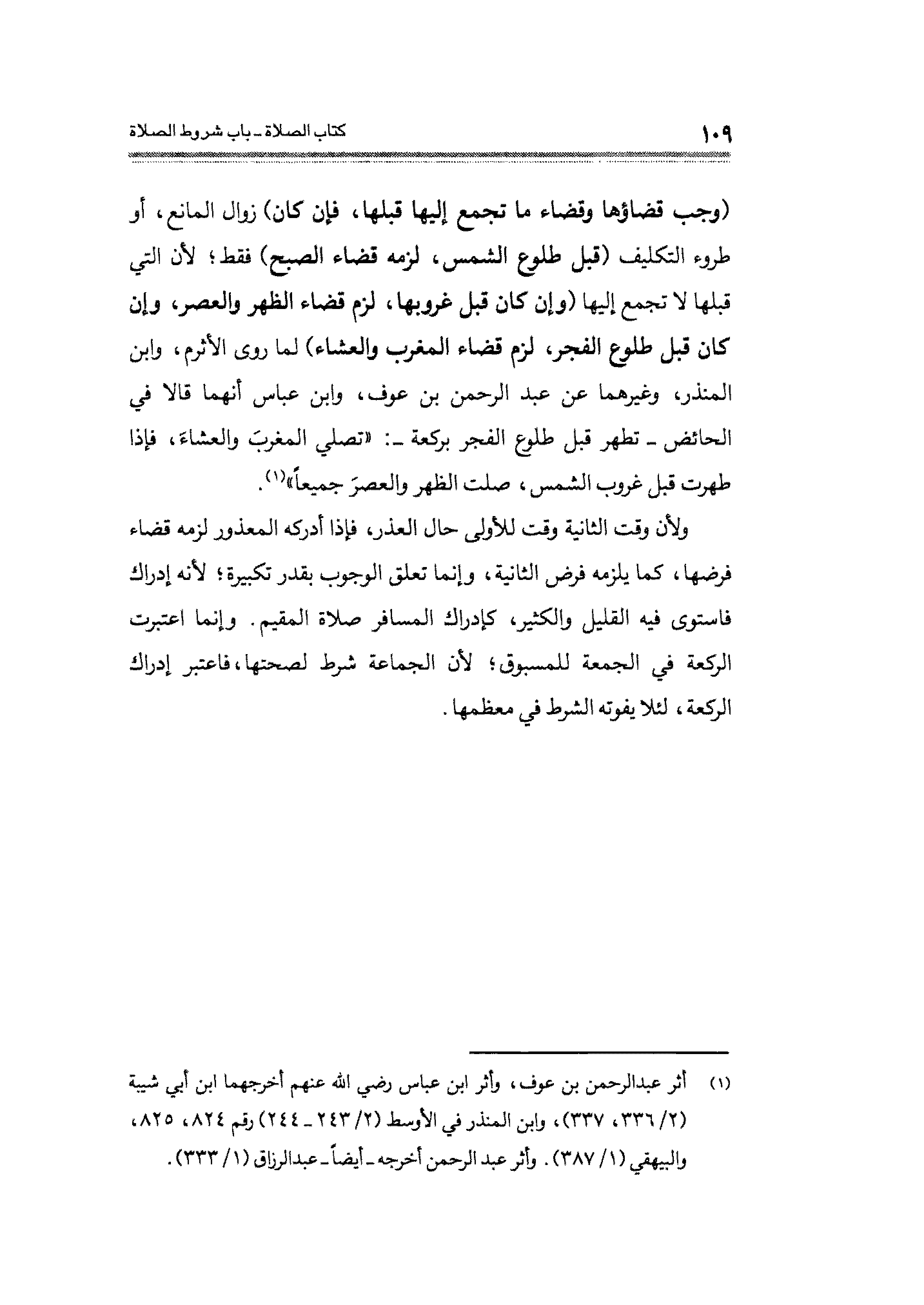 (¬١) أثر عبد الرحمن بن عرف، وأثر ابن عباس رضي الله عنهم أخرجهما ابن أبي شيبة (٢/ ٣٣٦، ٣٣٧)، وابن المنذر في الأوسط (٢/ ٢٤٣ - ٢٤٤) رقم ٨٢٤، ٨٢٥، والبيهقى (١/ ٣٨٧). وأثر عبد الرحمن أخرجه - أيضًا - عبد الرزاق (١/ ٣٣٣).
