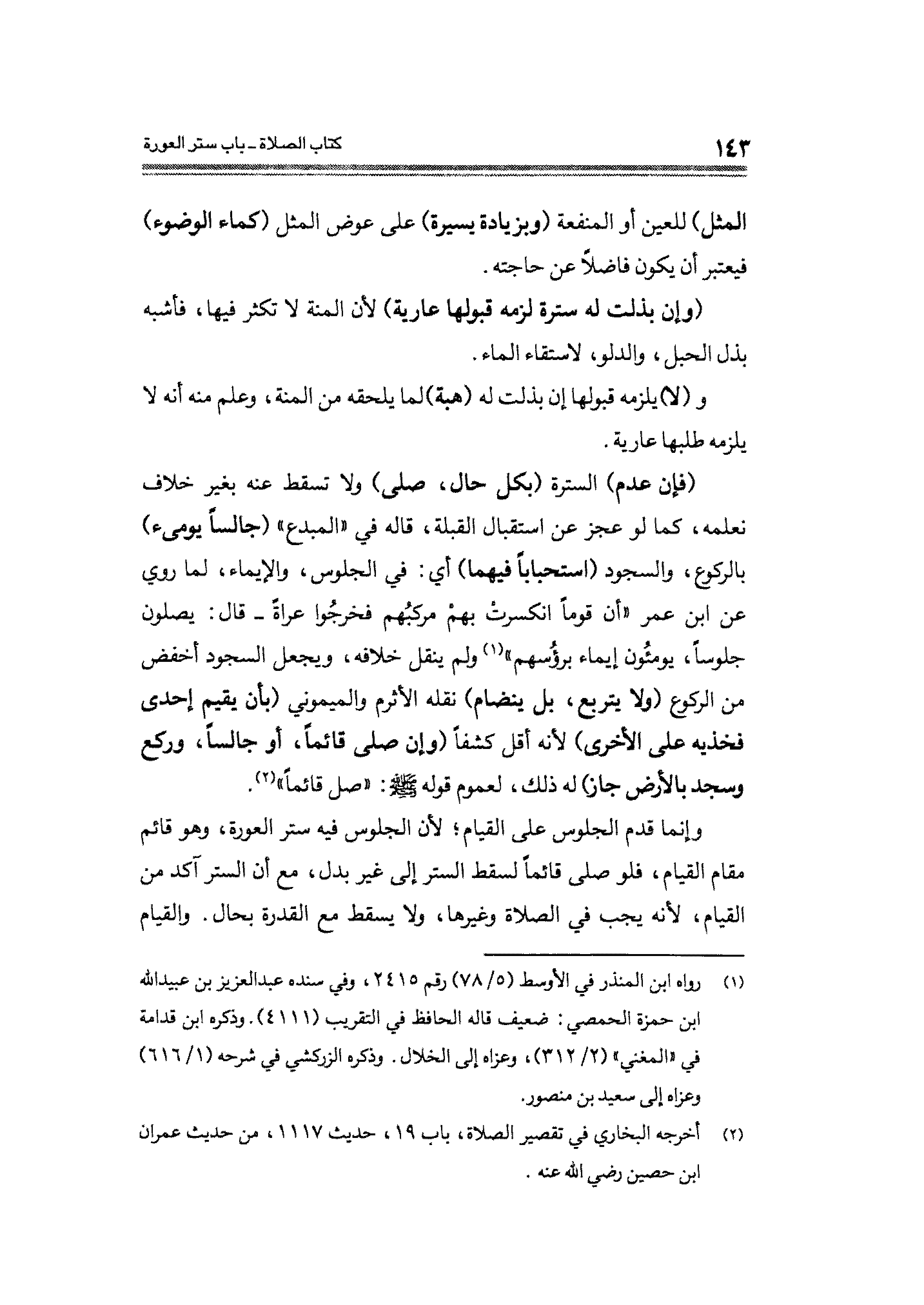 (¬٢) أخرجه البخاري في تقصير الصلاة، باب ١٩، حديث ١١١٧، من حديث عمران ابن حصين رضي الله عنه.
