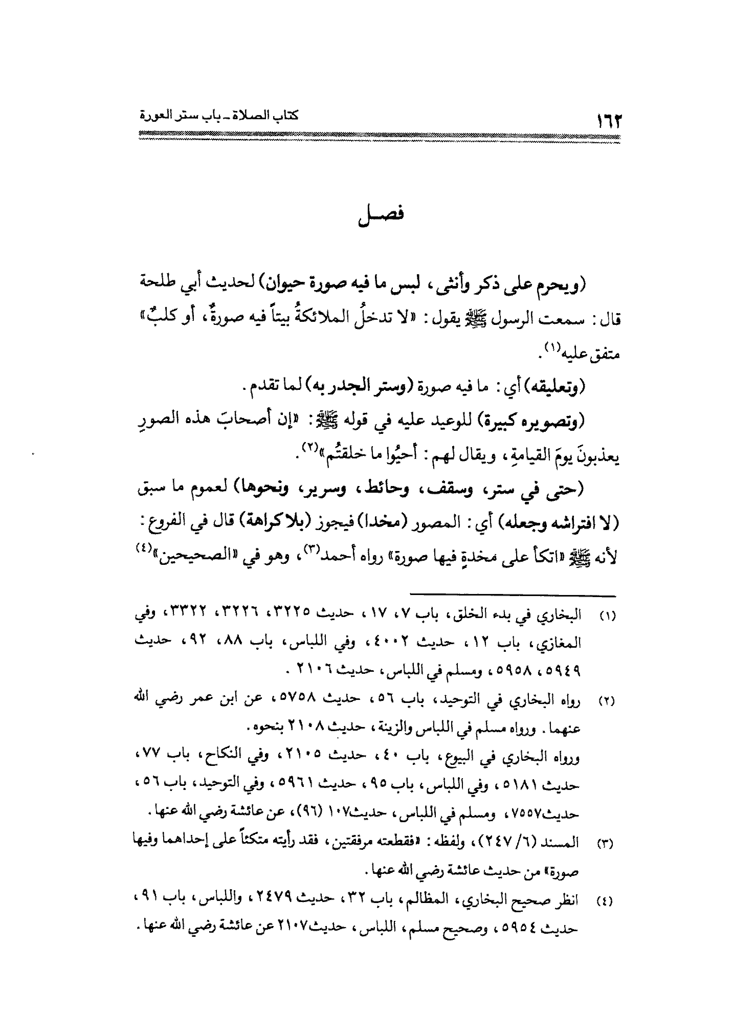 (¬٣) المسند (٦/ ٢٤٧)، ولفظه: "فقطعته مرفقتين، فقد رأيته متكئًا على إحداهما وفيها صورة" من حديث عائشة رضي الله عنها.