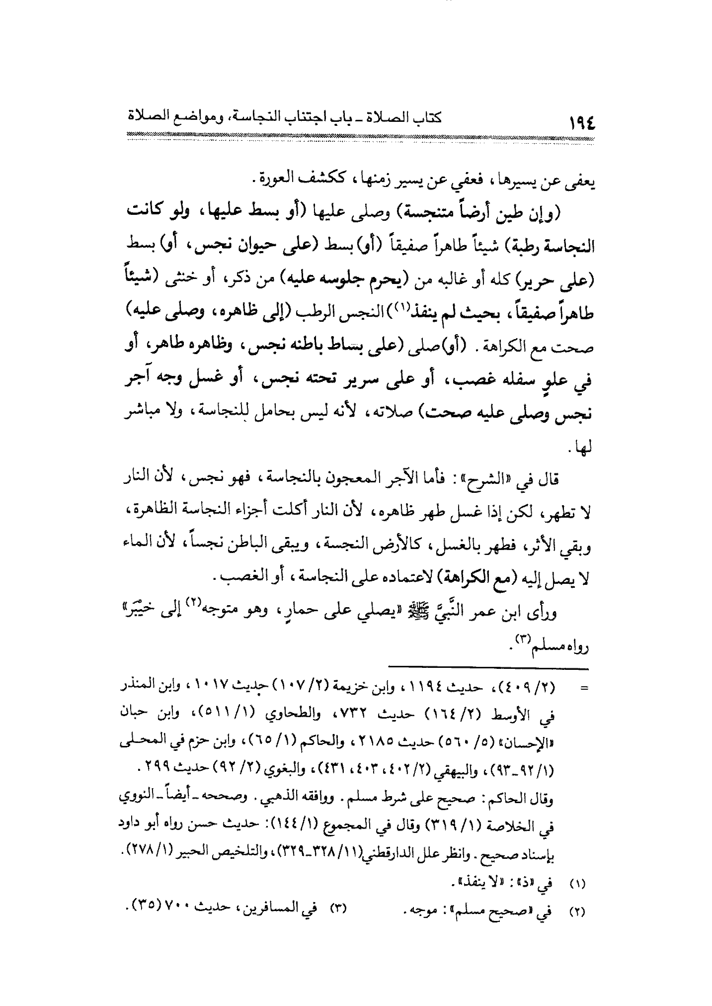 (وإن طين أرضًا متنجسة) وصلى عليها (أو بسط عليها، ولو كانت النجاسة رطبة) شيئًا طاهرًا صفيقًا (أو) بسط (على حيوان نجس، أو) بسط (على حرير) كله أو غالبه من (يحرم جلوسه عليه) من ذكر، أو خنثى (شيئًا طاهرًا صفيقًا، بحيث لم ينفذ (¬١)) النجس الرطب (إلى ظاهره، وصلى عليه) صحت مع الكراهة. (أو) صلى (على بساط باطنه نجس، وظاهره طاهر، أو في علوٍ سفله فصب، أو على سرير تحته نجس، أو غسل وجه آجر نجس وصلى عليه صحت) صلاته؛ لأنه ليس بحامل للنجاسة، ولا مباشر لها.