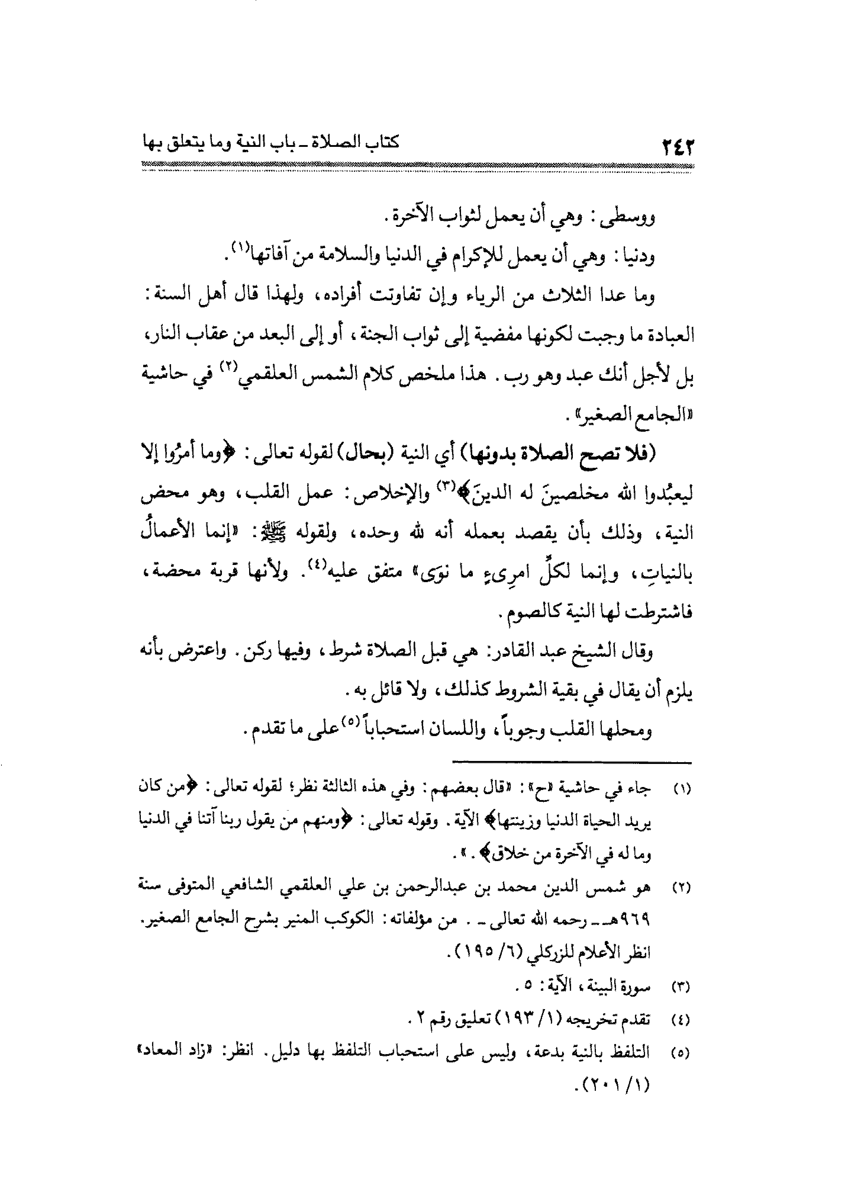 (¬٢) هو شمس الدين محمد بن عبد الرحمن بن علي العلقمي الشافعي المتوفى سنة ٩٦٩ هـ -رحمه الله تعالى-. من مؤلفاته: الكوكب المنير بشرح الجامع الصغير. انظر الأعلام للزركلي (٦/ ١٩٥).