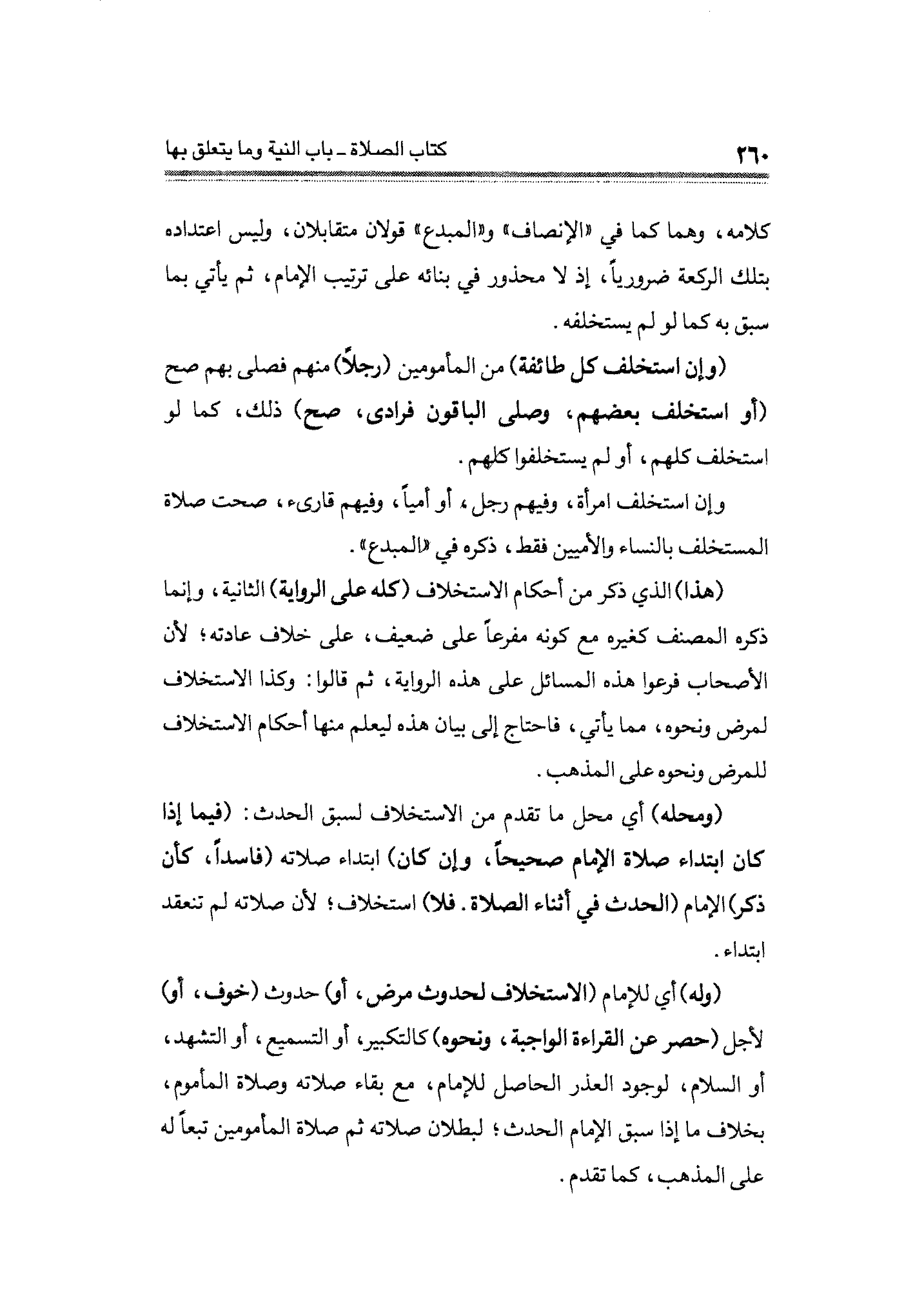 كلامه، وهما كما في "الإنصاف" و "المبدع" قولان متقابلان، وليس اعتداده بتلك الركعة ضروريًا، إذ لا محذور في بنائه على ترتيب الإمام، ثم يأتي بما سبق به كما لو لم يستخلفه.