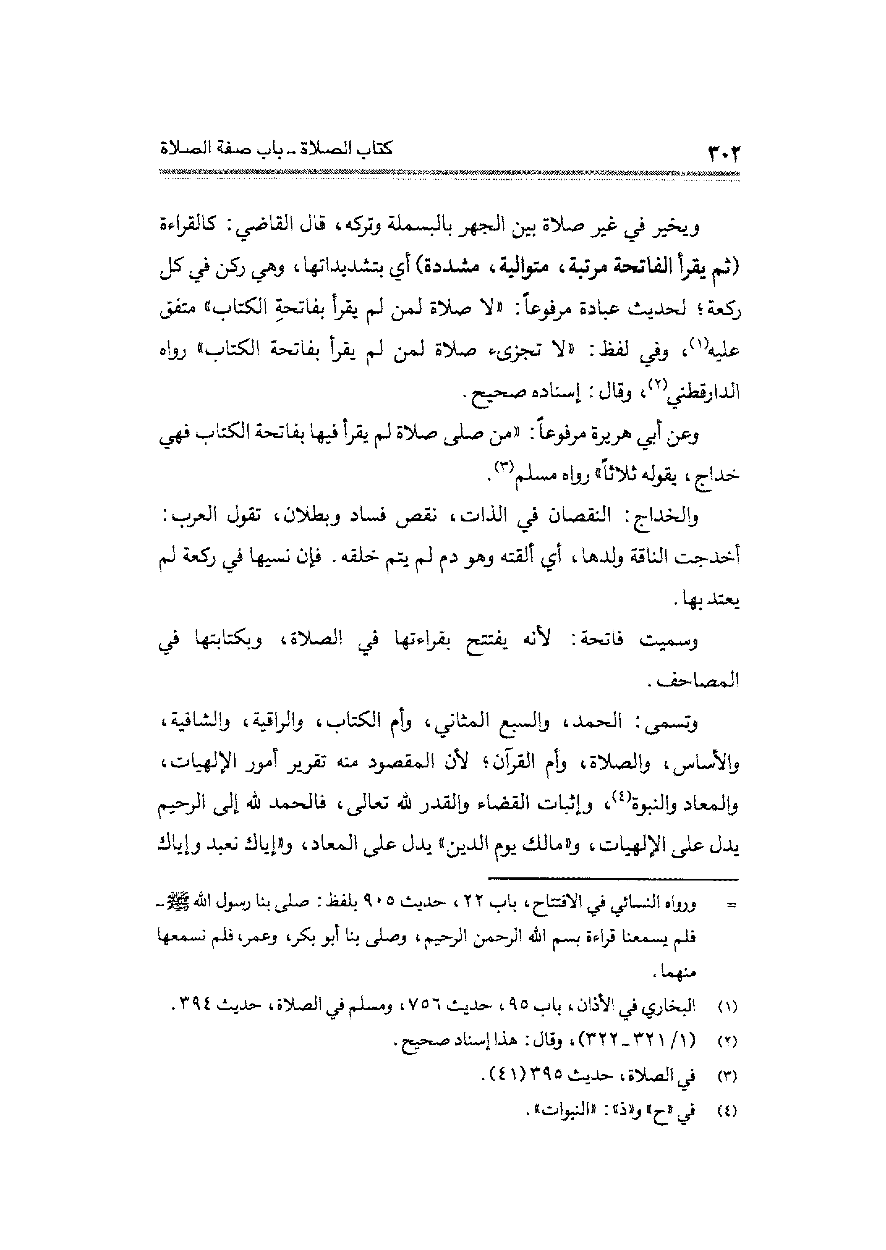 وعن أبي هريرة مرفوعًا: "من صلى صلاة لم يقرأ فيها بفاتحة الكتاب فهي خداج، يقوله ثلاثًا" رواه مسلم (¬٣).