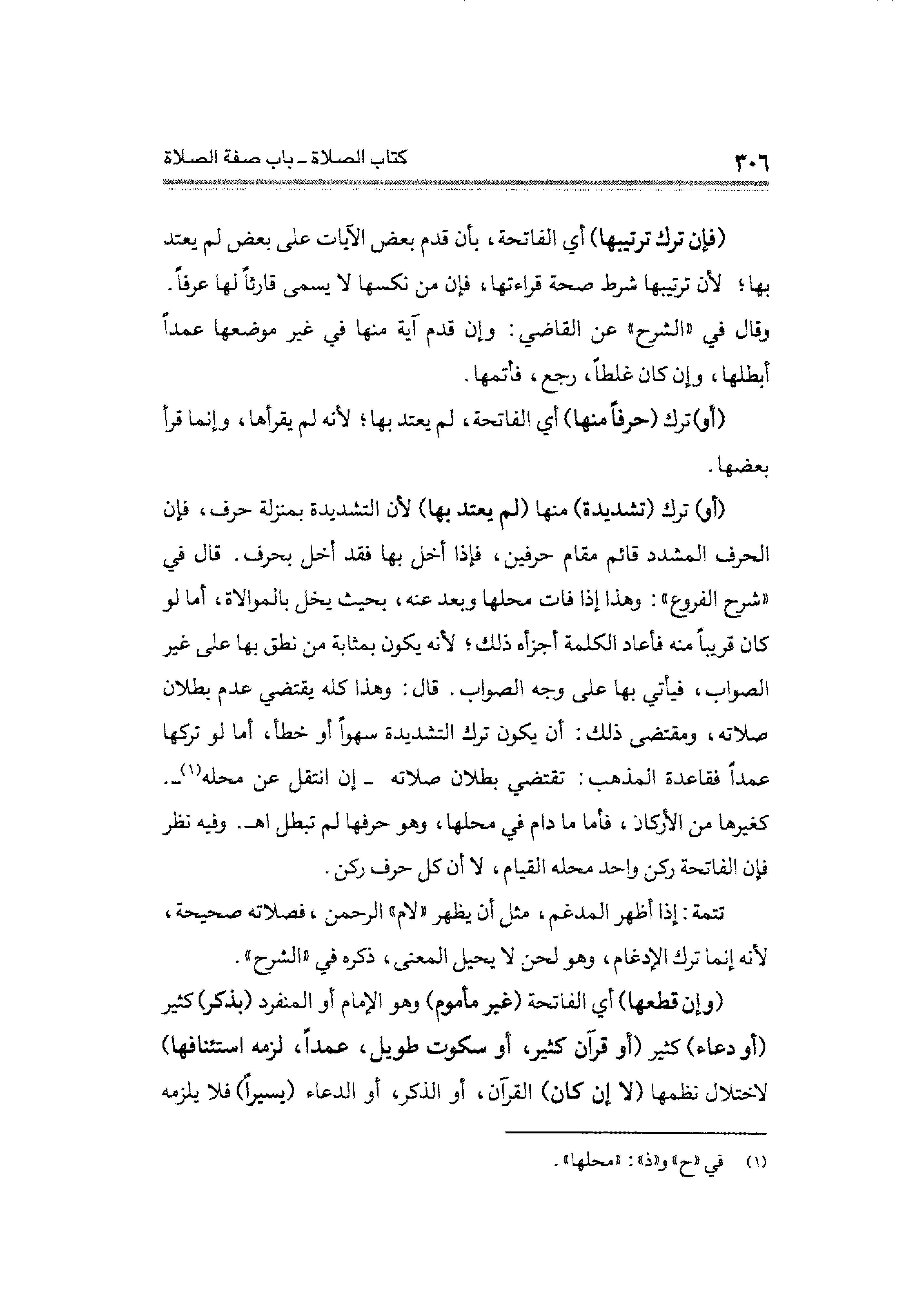 تتمة: إذا أظهر المدغم، مثل أن يظهر "لام" الرحمن، فصلاته صحيحة، لأنه إنما ترك الإدغام، وهو لحن لا يحيل المعنى، ذكره في "الشرح".