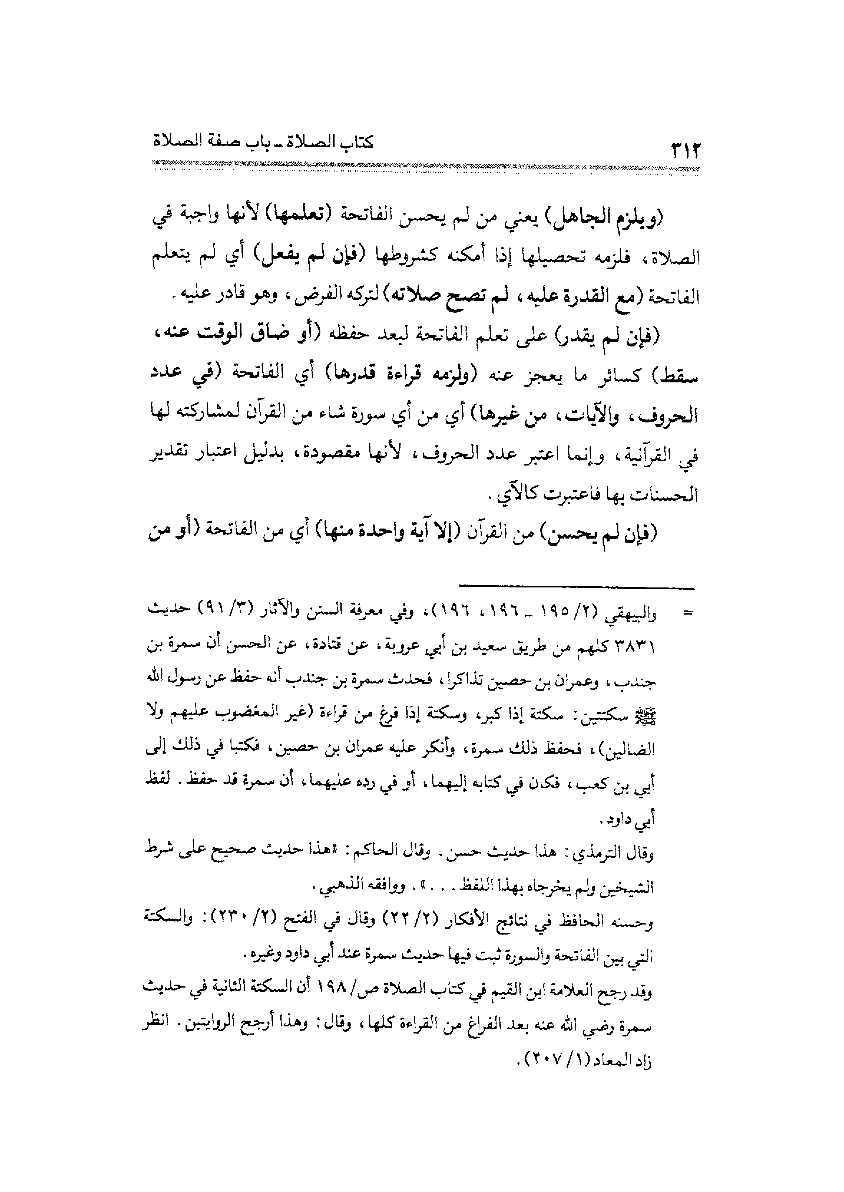 (ويلزم الجاهل) يعنّي من لم يحسن الفاتحة (تعلمها) لأنها واجبة في الصلاة، فلزمه تحصيلها إذا أمكنه كشروطها (فإن لم يفعل) أي لم يتعلم الفاتحة (مع القدرة عليه، لم تصح صلاته) لتركه الفرض، وهو قادر عليه.