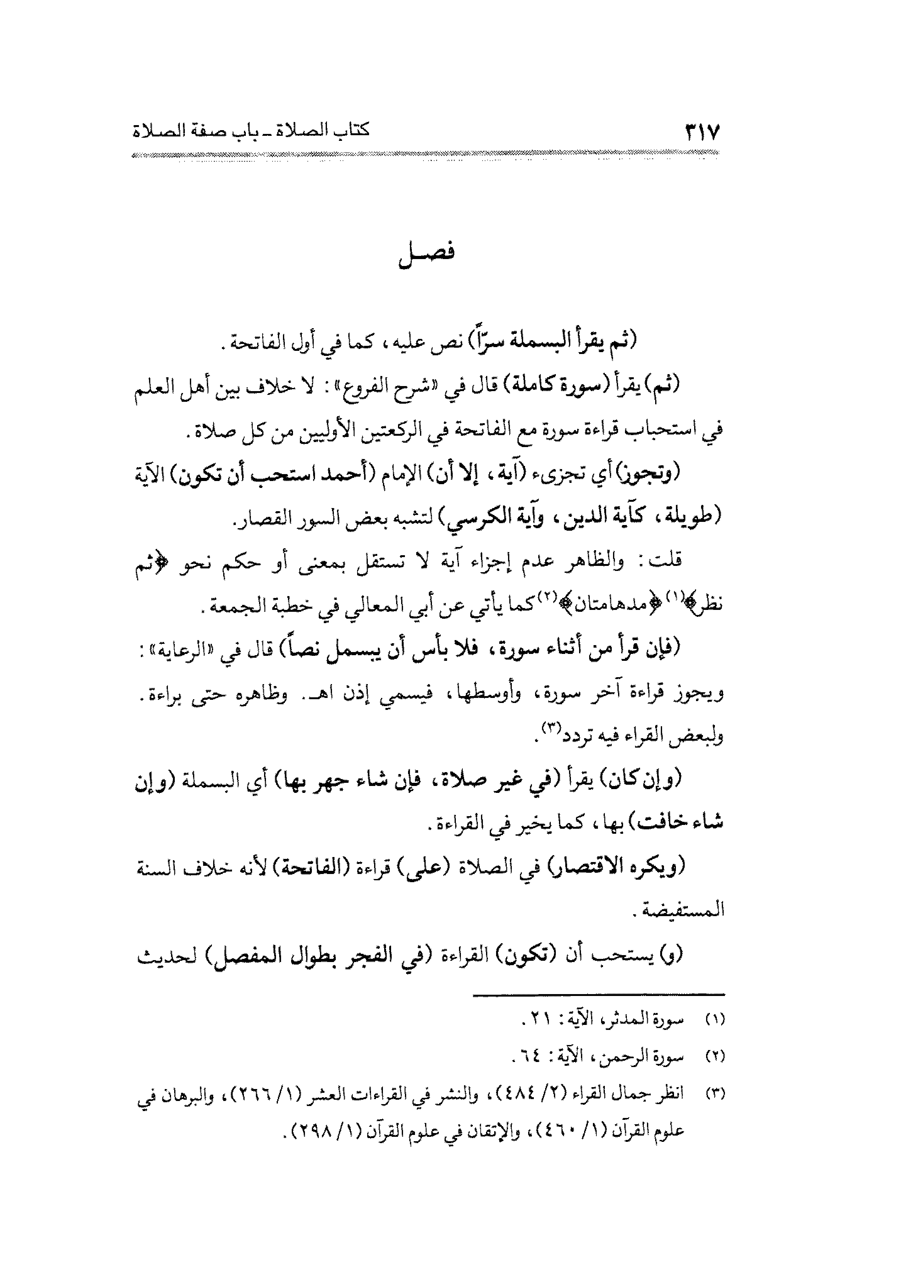 (¬٣) انظر جمال القراء (٢/ ٤٨٤)، والنشر في القراءات العشر (١/ ٢٦٦)، والبرهان في علوم القرآن (١/ ٤٦٠)، والإتقان في علوم القرآن (١/ ٢٩٨).