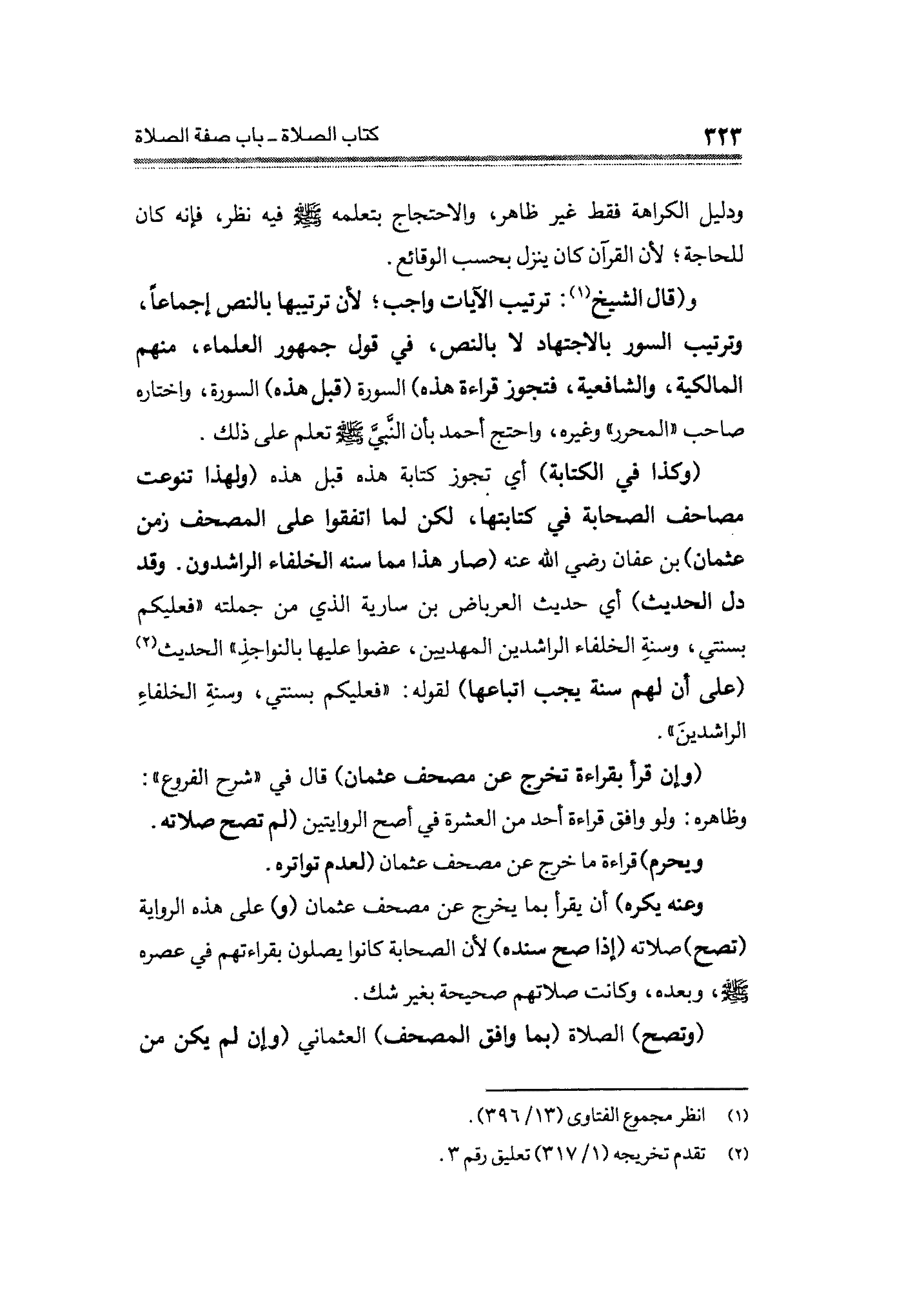 (وكذا في الكتابة) أي تجوز كتابة هذه قبل هذه (ولهذا تنوعت مصاحف الصحابة في كتابتها، لكن لما اتفقوا على المصحف زمن عثمان) بن عفان رضي الله عنه (صار هذا مما سنه الخلفاء الراشدون. وقد دل الحديث) أي حديث العرباض بن سارية الذي من جملته "فعليكم بسنتي، وسنةِ الخلفاء الراشدين المهديين، عضوا عليها بالنواجذِ" الحديث (¬٢) (على أن لهم سنة يجب اتباعها) لقوله: "فعليكم بسنتي، وسنةِ الخلفاءِ الراشدينَ".