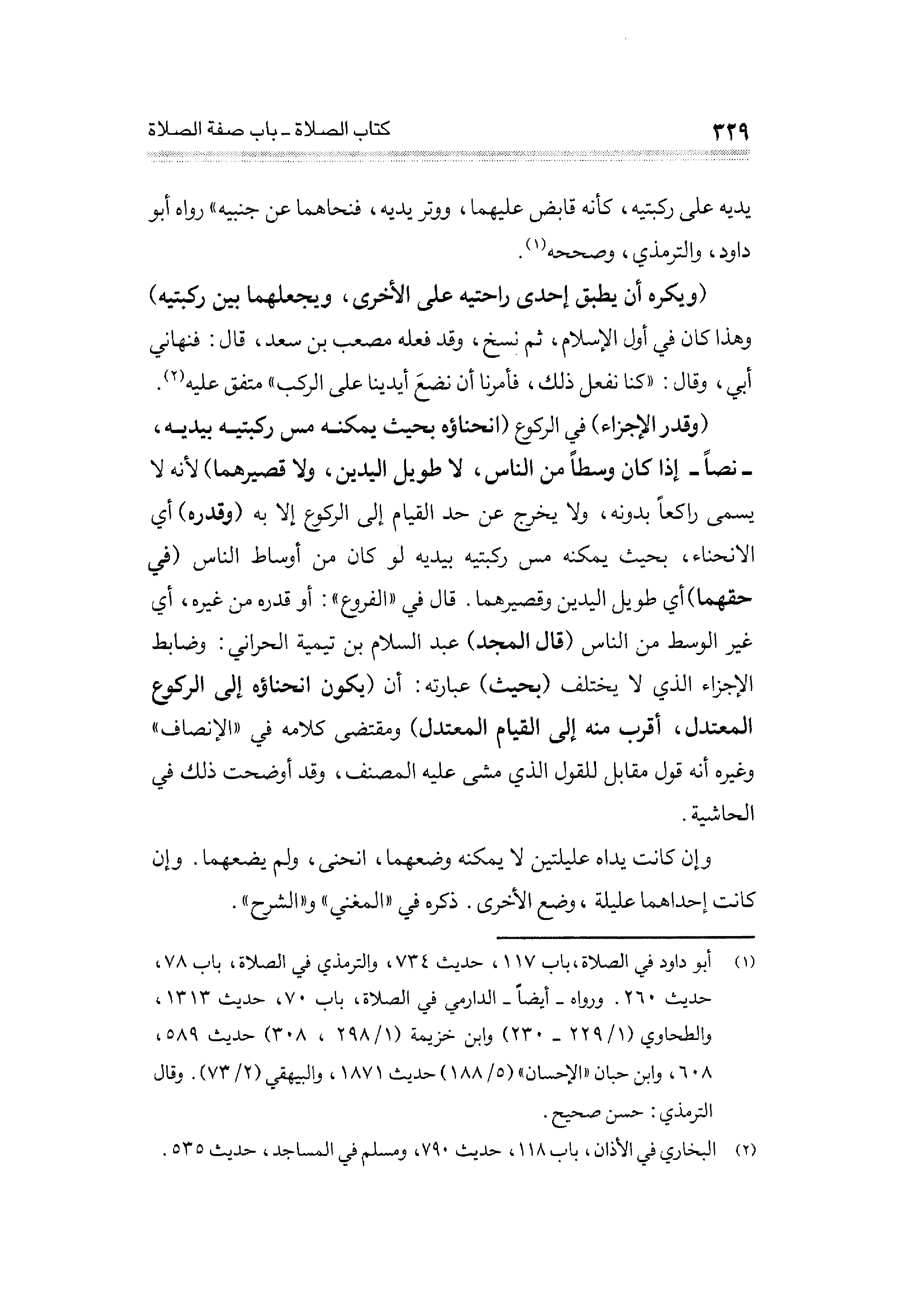 (¬١) أبو داود في الصلاة، باب ١١٧، حديث ٧٣٤، والترمذي في الصلاة، باب ٧٨، حديث ٢٦٠. ورواه - أيضاً - الدارمي في الصلاة، باب ٧٥، حديث ١٣١٣، والطحاوي (١/ ٢٢٩ - ٢٣٠) وابن خزيمة (١/ ٢٩٨، ٣٠٨) حديث ٥٨٩، ٦٠٨، وابن حبان "الإحسان" (٥/ ١٨٨) حديث ١٨٧١، والبيهقي (٢/ ٧٣). وقال الترمذي: حسن صحيح.