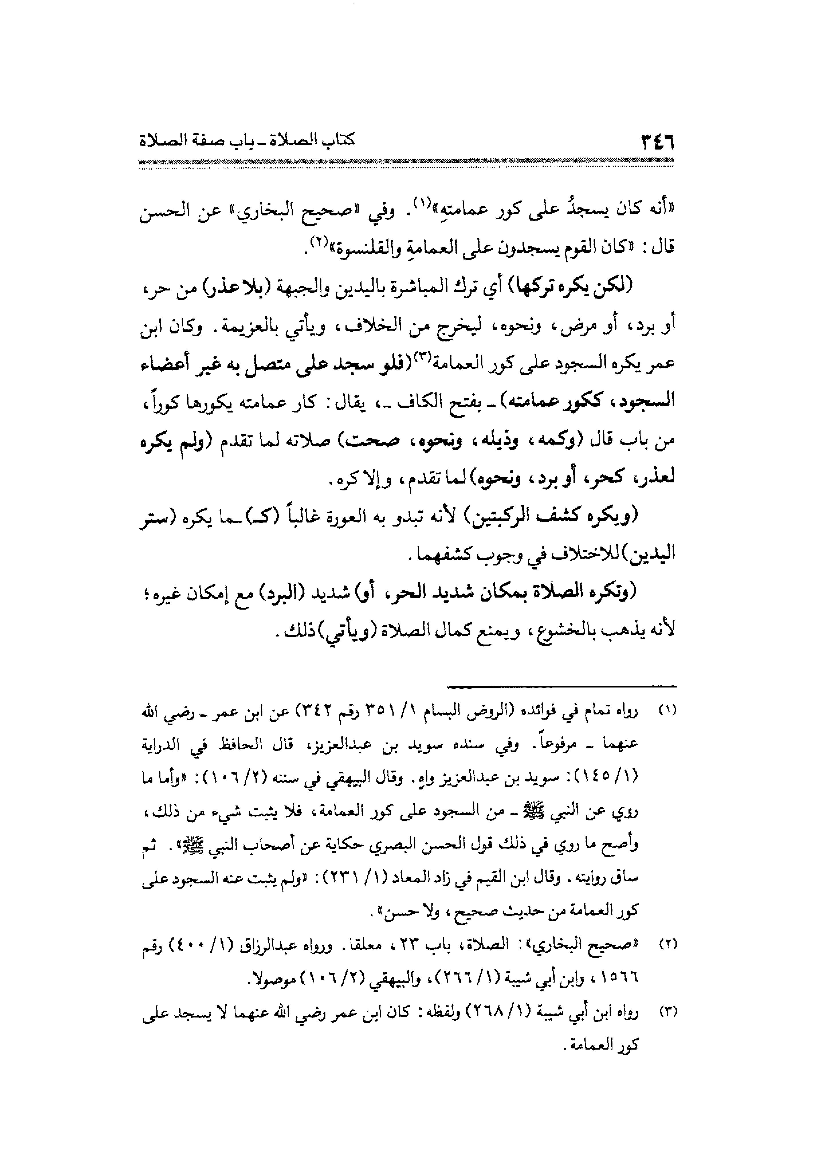 (¬٣) رواه ابن أبى شيبة (١/ ٢٦٨) ولفظه: كان ابن عمر رضي الله عنهما لا يسجد على كور العمامة.