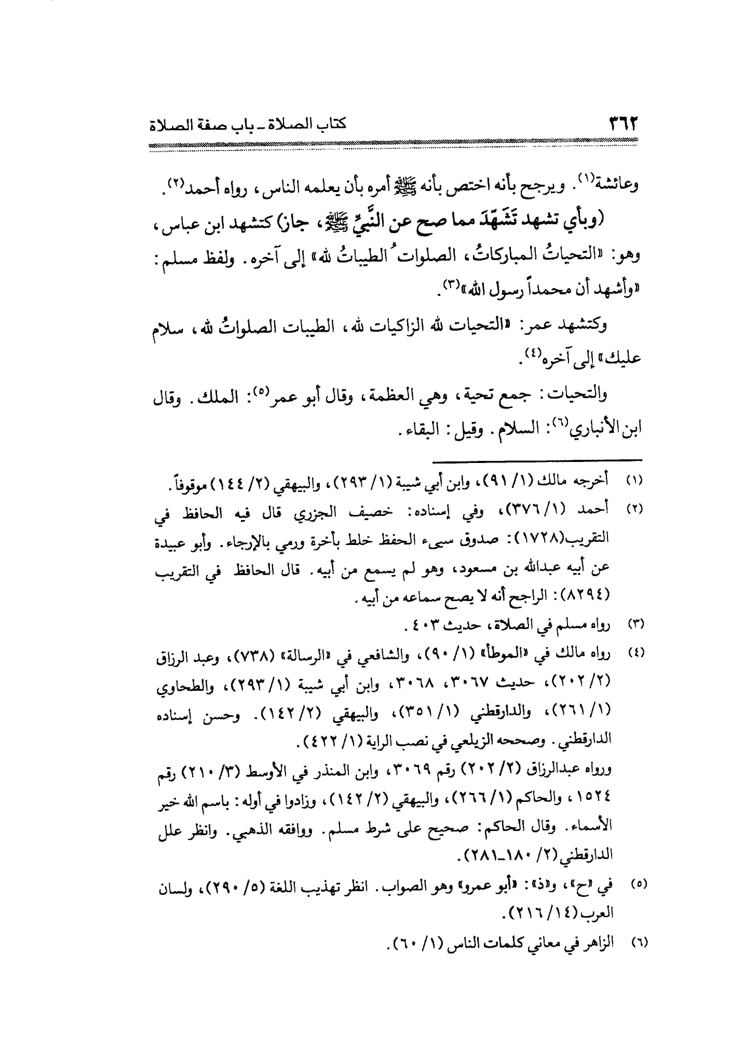 وكتشهد عمر: "التحيات لله الزاكيات لله، الطيبات الصلواتُ لله، سلام عليك" إلى آخره (¬٤).