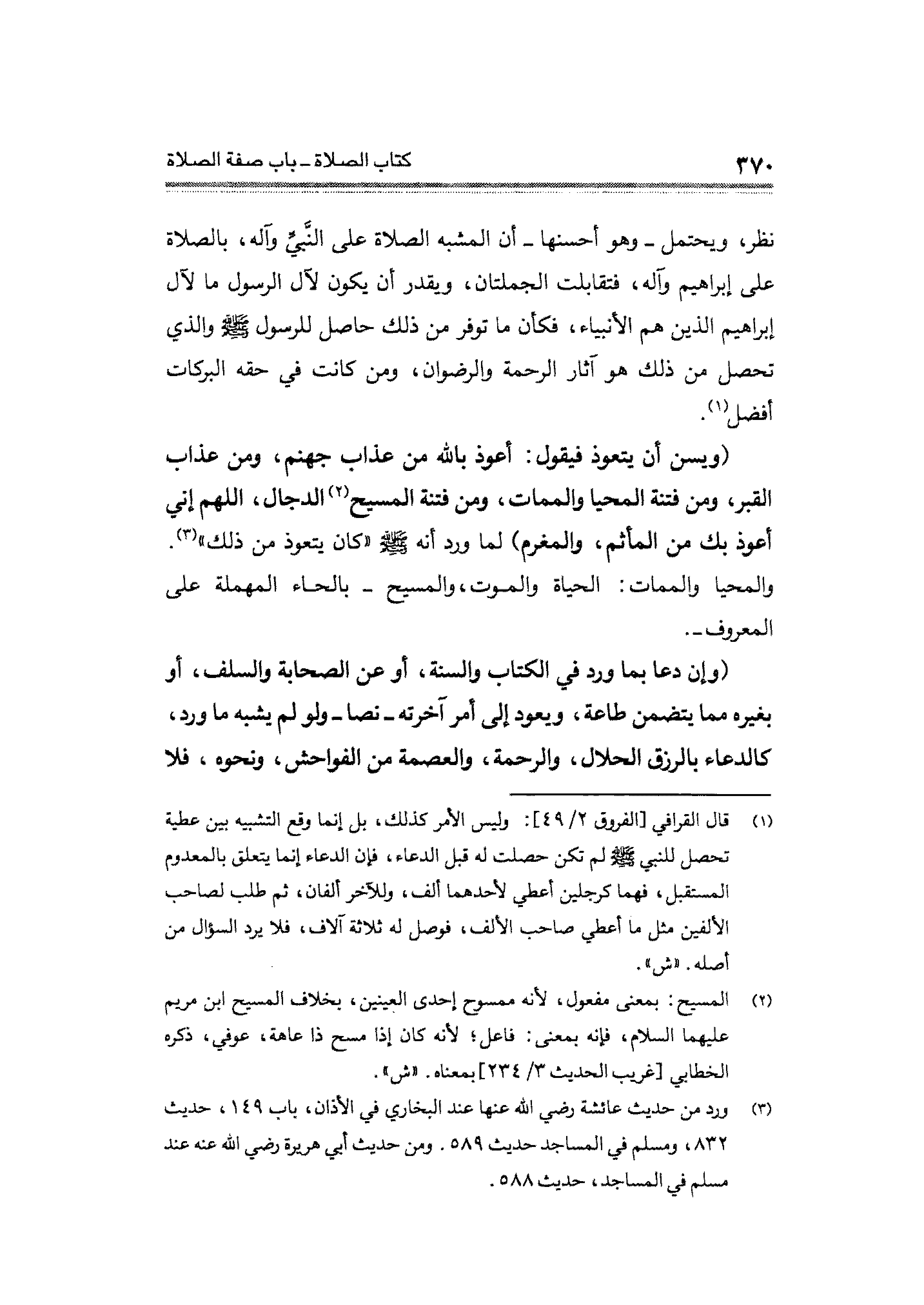 (¬٣) ورد من حديث عائشة رضي الله عنها عند البخاري في الأذان، باب ١٤٩، حديث ٨٣٢، ومسلم في المساجد حديث ٥٨٩. ومن حديث أبي هريرة رضي الله عنه عند مسلم في المساجد، حديث ٥٨٨.
