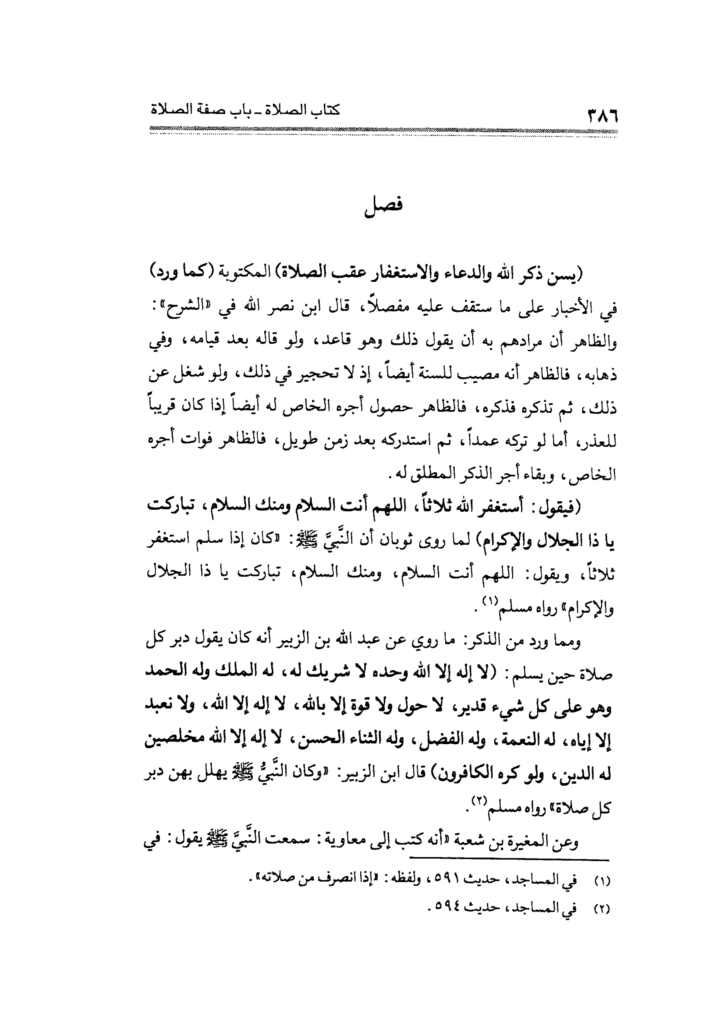 (يسن ذكر الله والدعاء والاستغفار عقب الصلاة) المكتوبة (كما ورد) في الأخبار على ما ستقف عليه مفصلاً، قال ابن نصر الله في "الشرح": والظاهر أن مرادهم به أن يقول ذلك وهو قاعد، ولو قاله بعد قيامه، وفي ذهابه، فالظاهر أنه مصيب للسنة أيضاً، إذ لا تحجير في ذلك، ولو شغل عن ذلك، ثم تذكره فذكره، فالظاهر حصول أجره الخاص له أيضاً إذا كان قريباً للعذر، أما لو تركه عمداً، ثم استدركه بعد زمن طويل، فالظاهر فوات أجره الخاص، وبقاء أجر الذكر المطلق له.