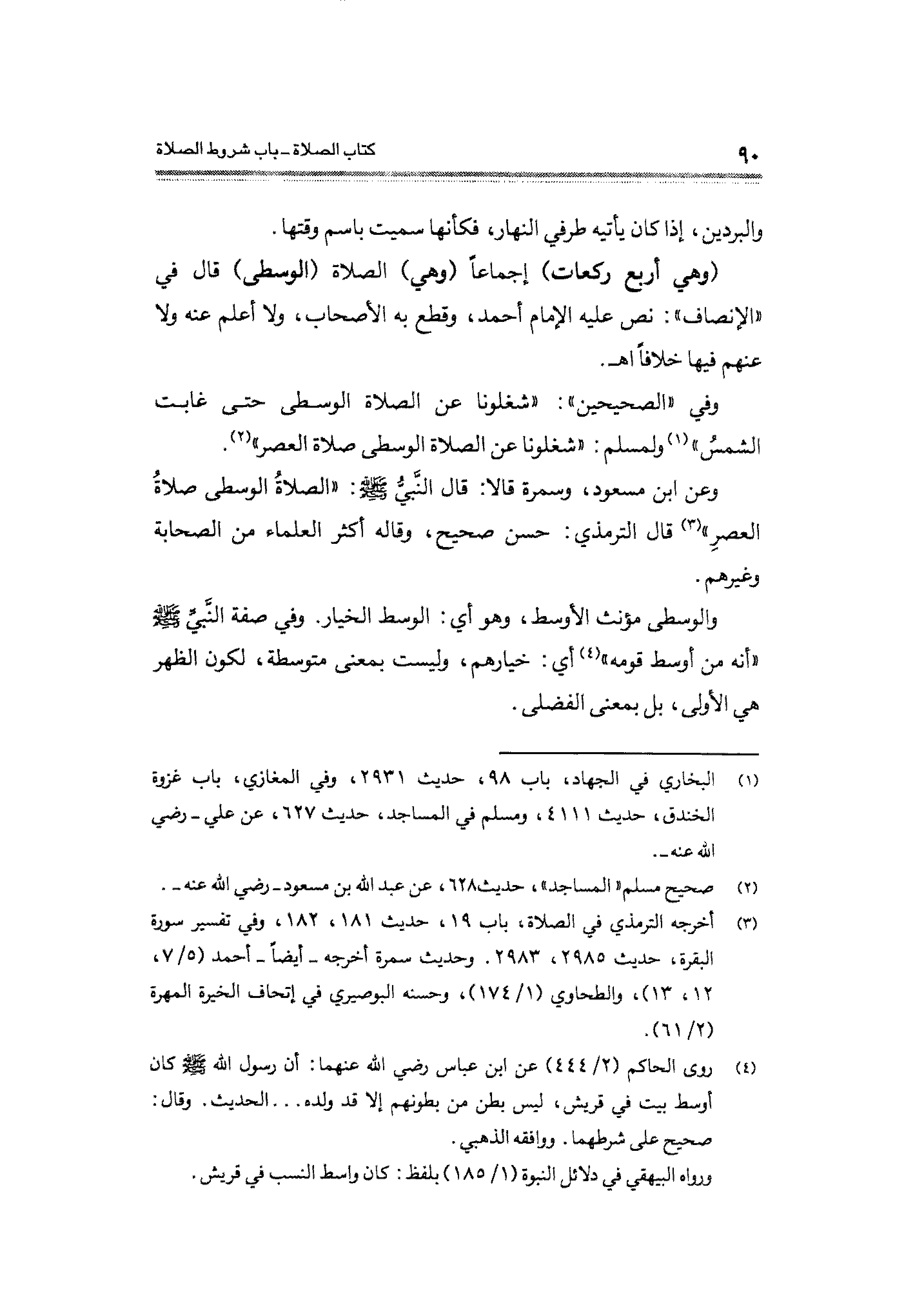وعن ابن مسعود، وسمرة قالا: قال النَّبيُّ - صلى الله عليه وسلم -: "الصلاةُ الوسطى صلاة العصرِ" (¬٣) قال الترمذي: حسن صحيح، وقاله أكثر العلماء من الصحابة وغيرهم.