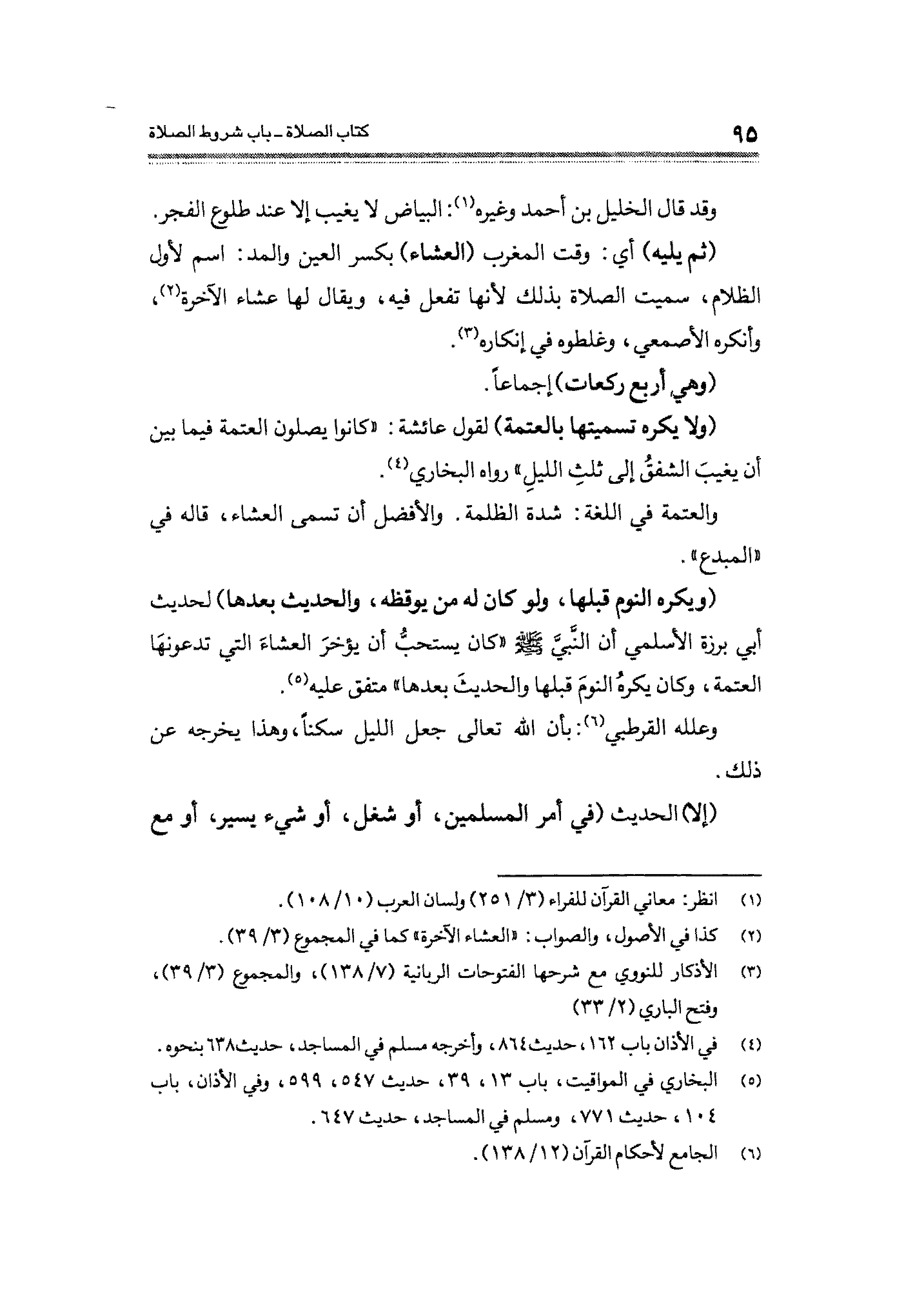 (¬٥) البخاري في المواقيت، باب ١٣، ٨٣٩ حديث ٥٤٧، ٥٩٩، وفي الأذان، باب ١٠٤، حديث ٧٧١، ومسلم في المساجد، حديث ٦٤٧.
