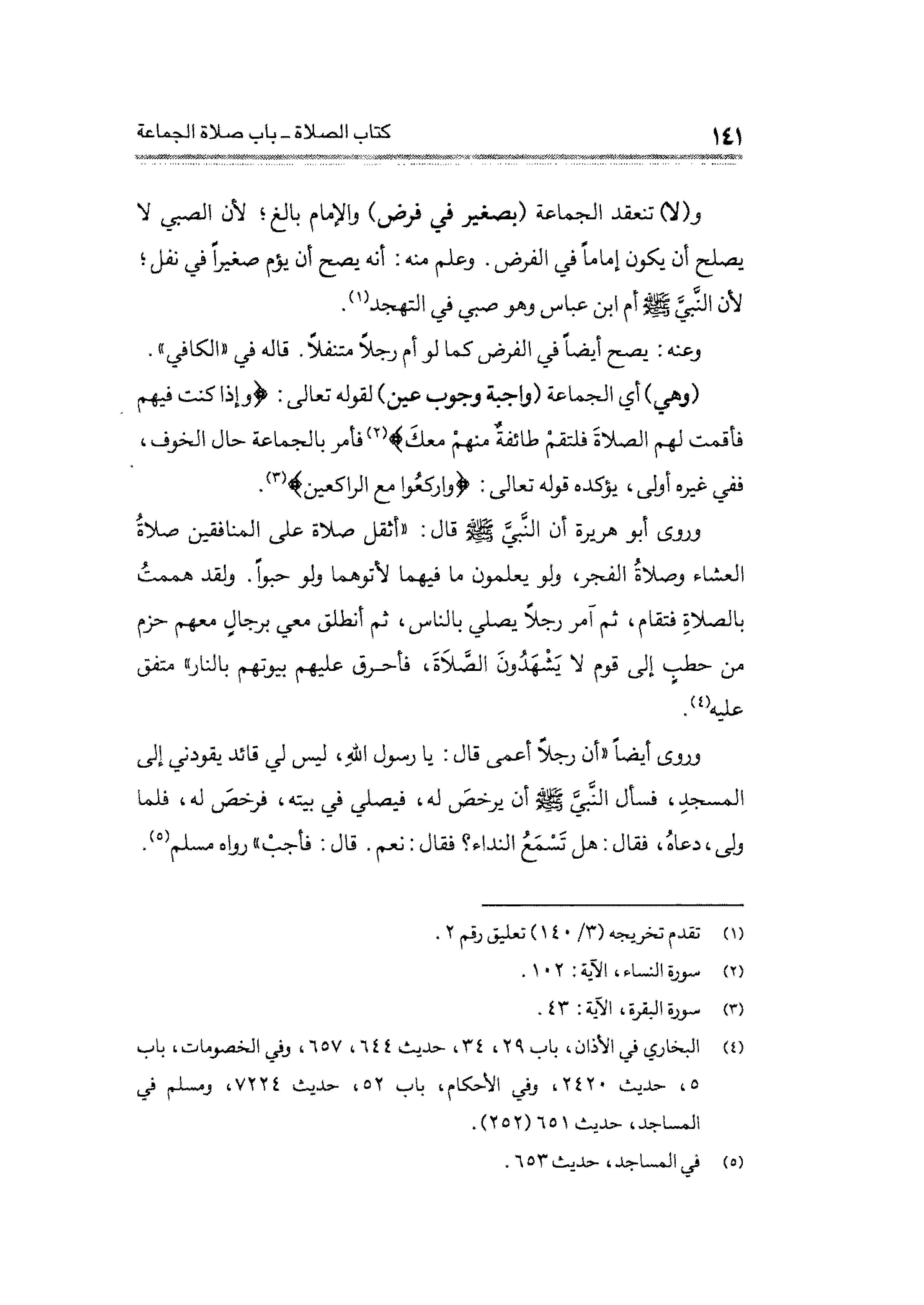 (¬٤) البُخاريّ في الأذان، باب ٢٩، ٣٤، حديث ٦٤٤، ٦٥٧، وفي الخصومات، باب ٥، حديث ٢٤٢٠، وفي الأحكام، باب ٥٢، حديث ٧٢٢٤، ومسلم في المساجد، حديث ٦٥١ (٢٥٢).