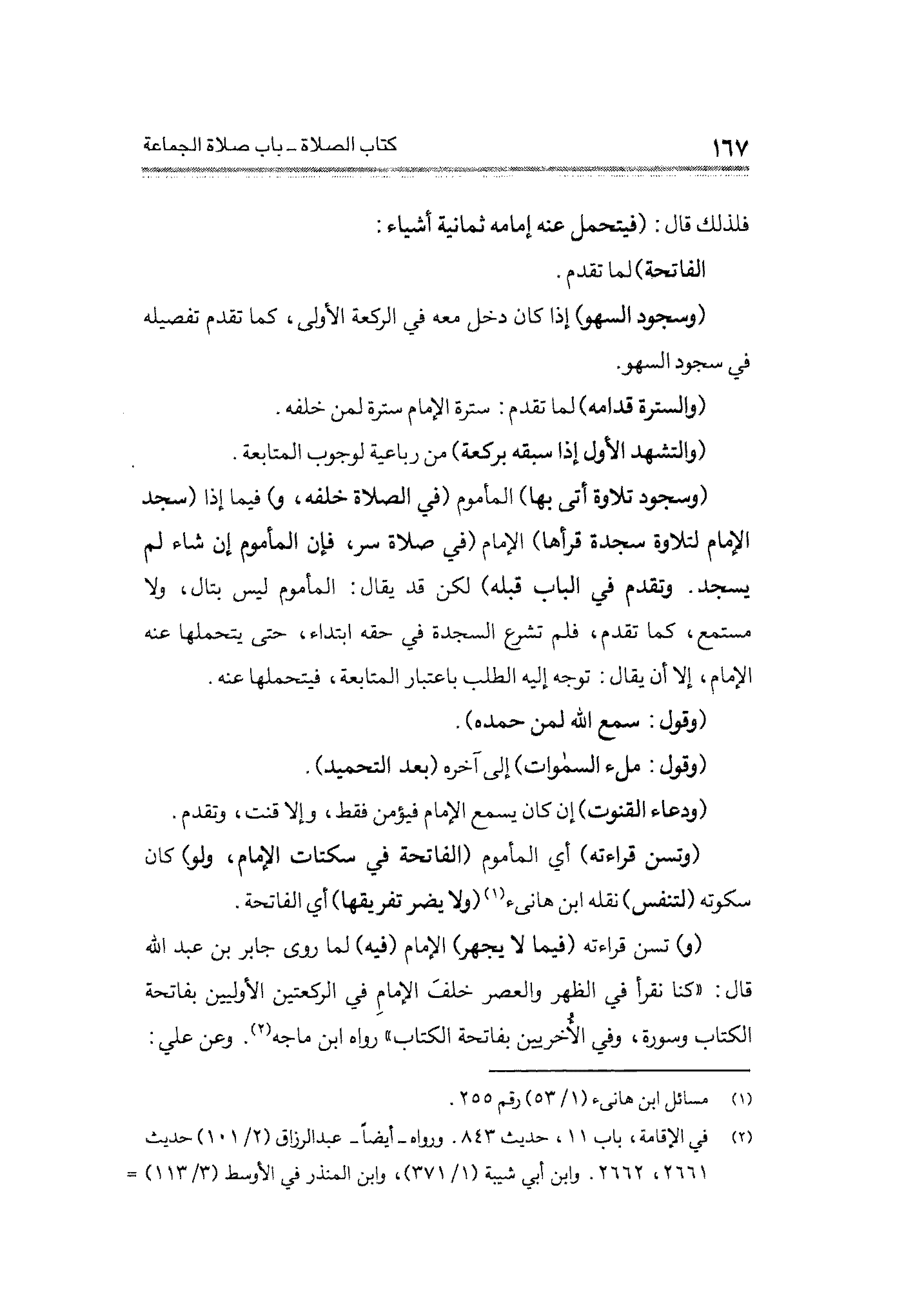فلذلك قال: (فيتحمل عنه إمامه ثمانية أشياء: