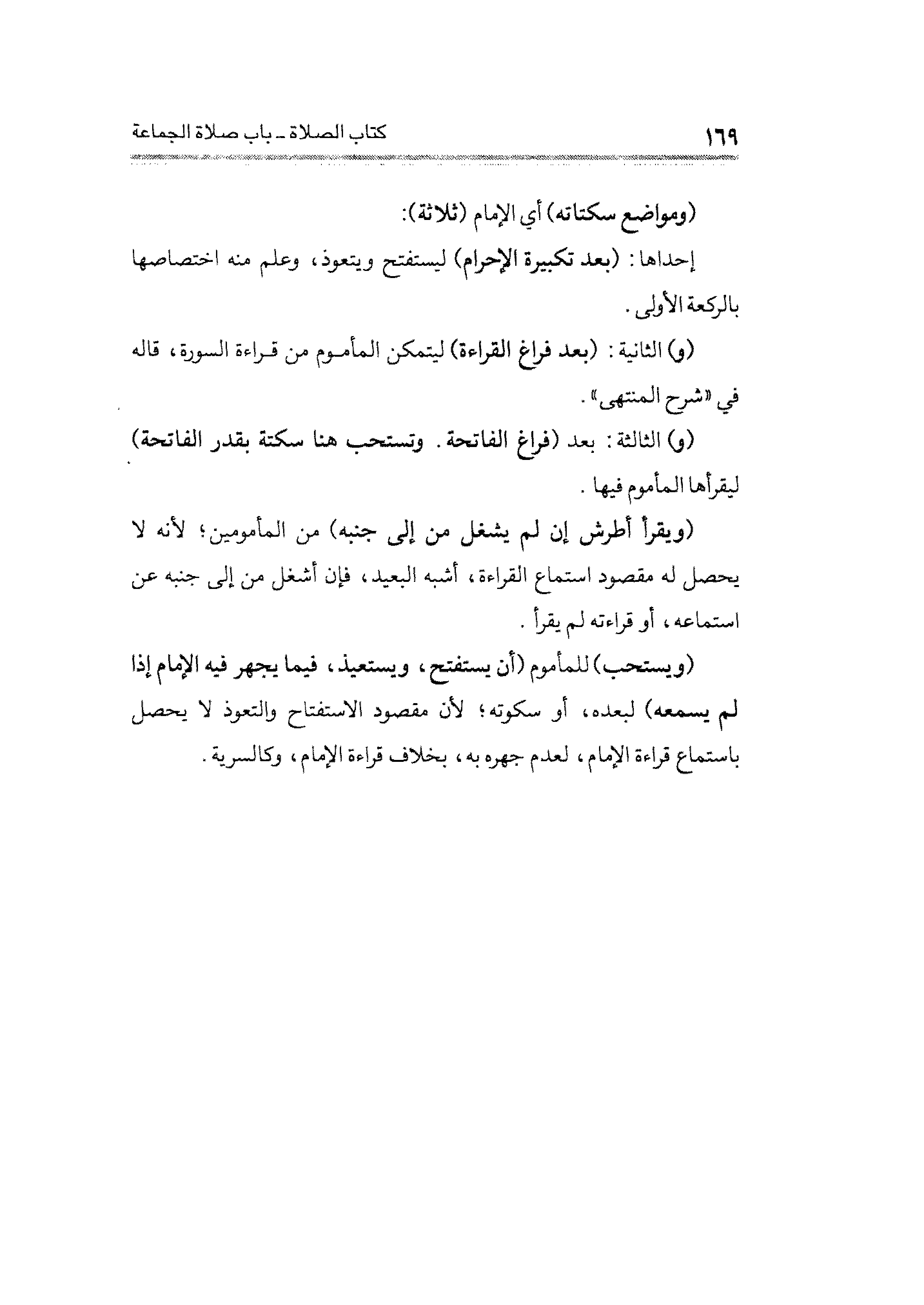 (و) ما الثالثة: بعد (فراغ الفاتحة. وتستحب هنا سكتة بقدر الفاتحة) ليقرأها المأموم فيها.