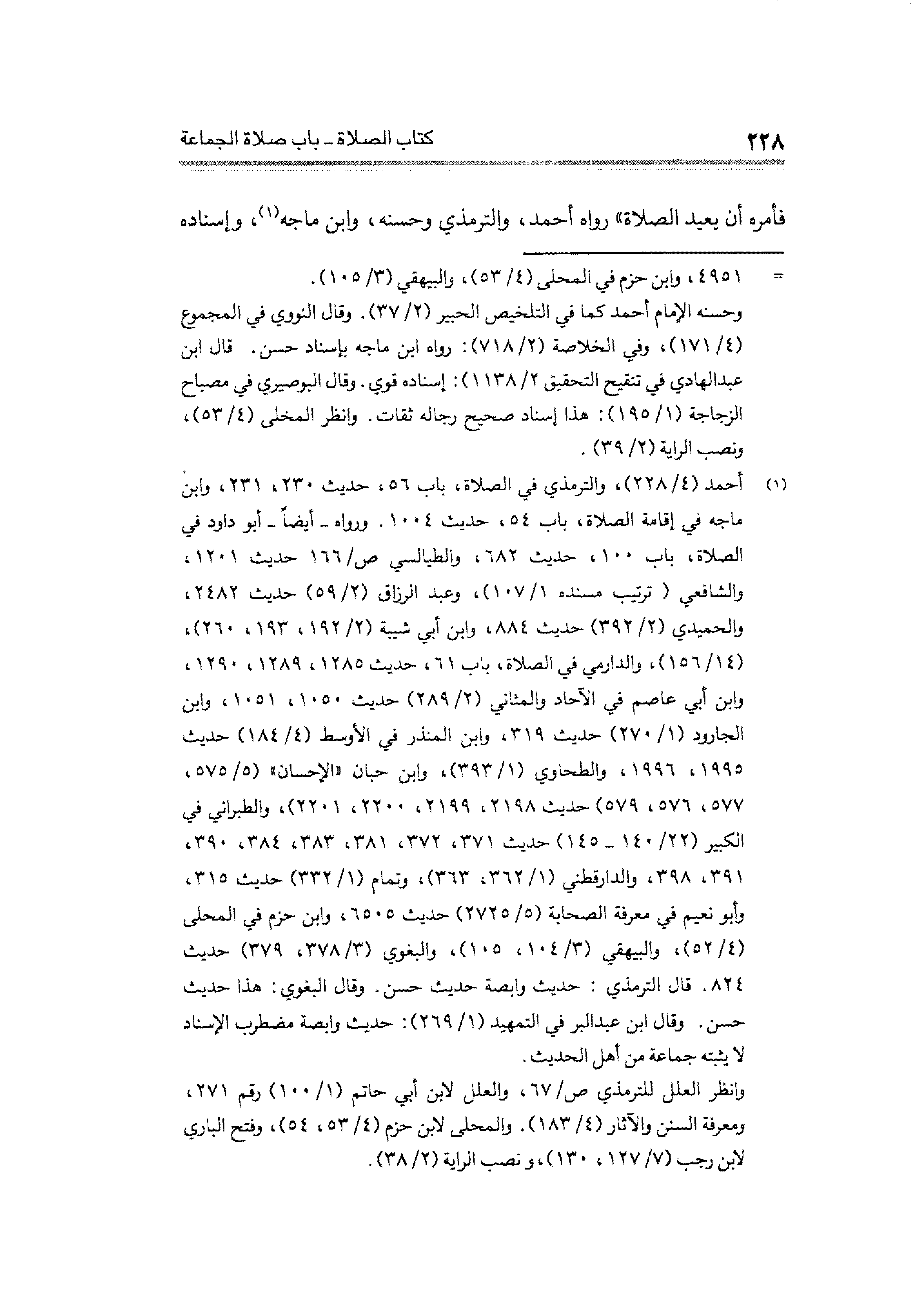 فأمره أن يعيد الصلاة" رواه أحمد، والترمذي وحسنه، وابن ماجه (¬١)، وإسناده