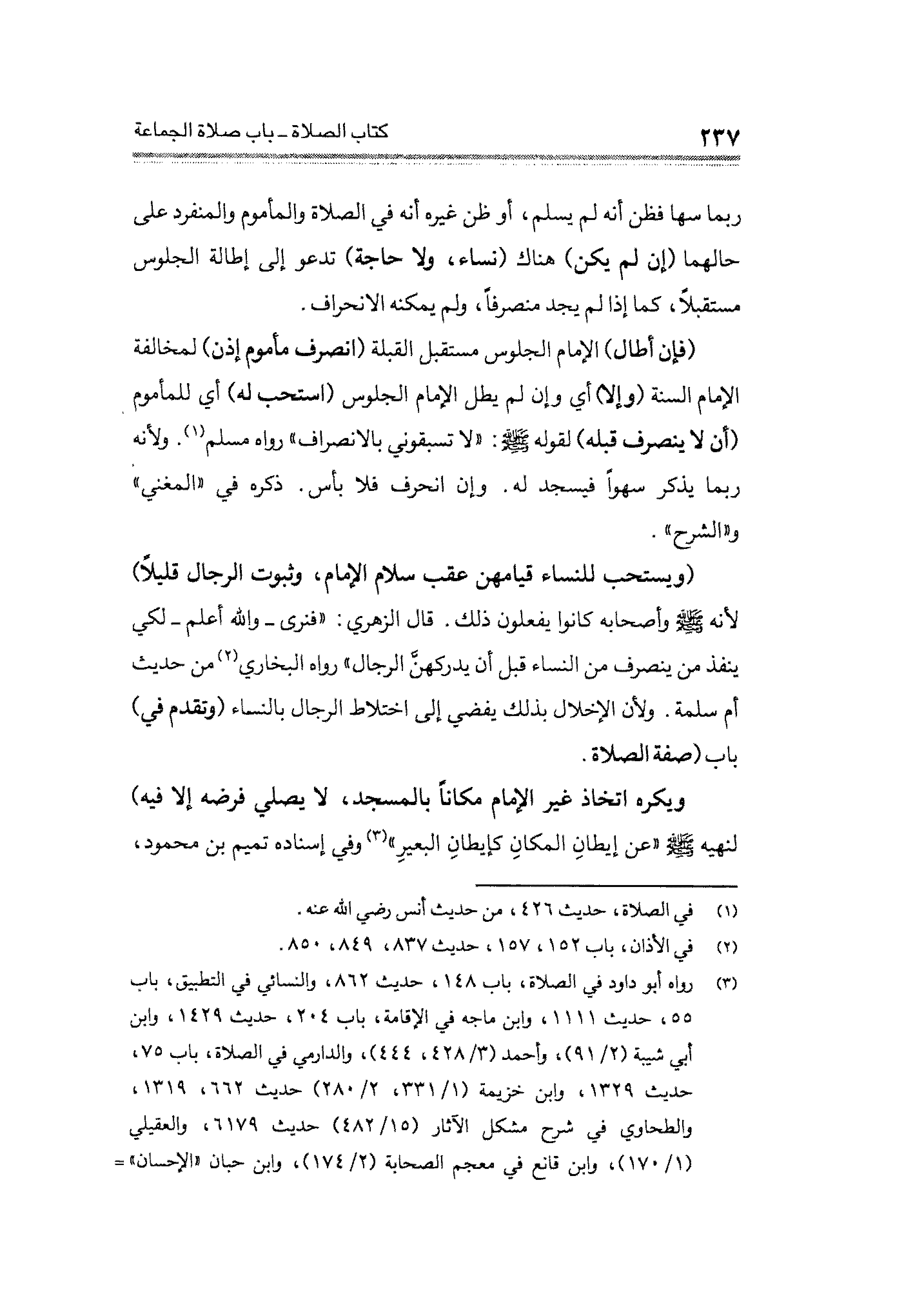 ويكره اتخاذ غير الإمام مكانًا بالمسجد، لا يصلي فرضه إلا فيه) لنهيه - صلى الله عليه وسلم - "عن إيطانِ المكانِ كإيطانِ البعيرِ" (¬٣) وفي إسناده تميم بن محمود،
