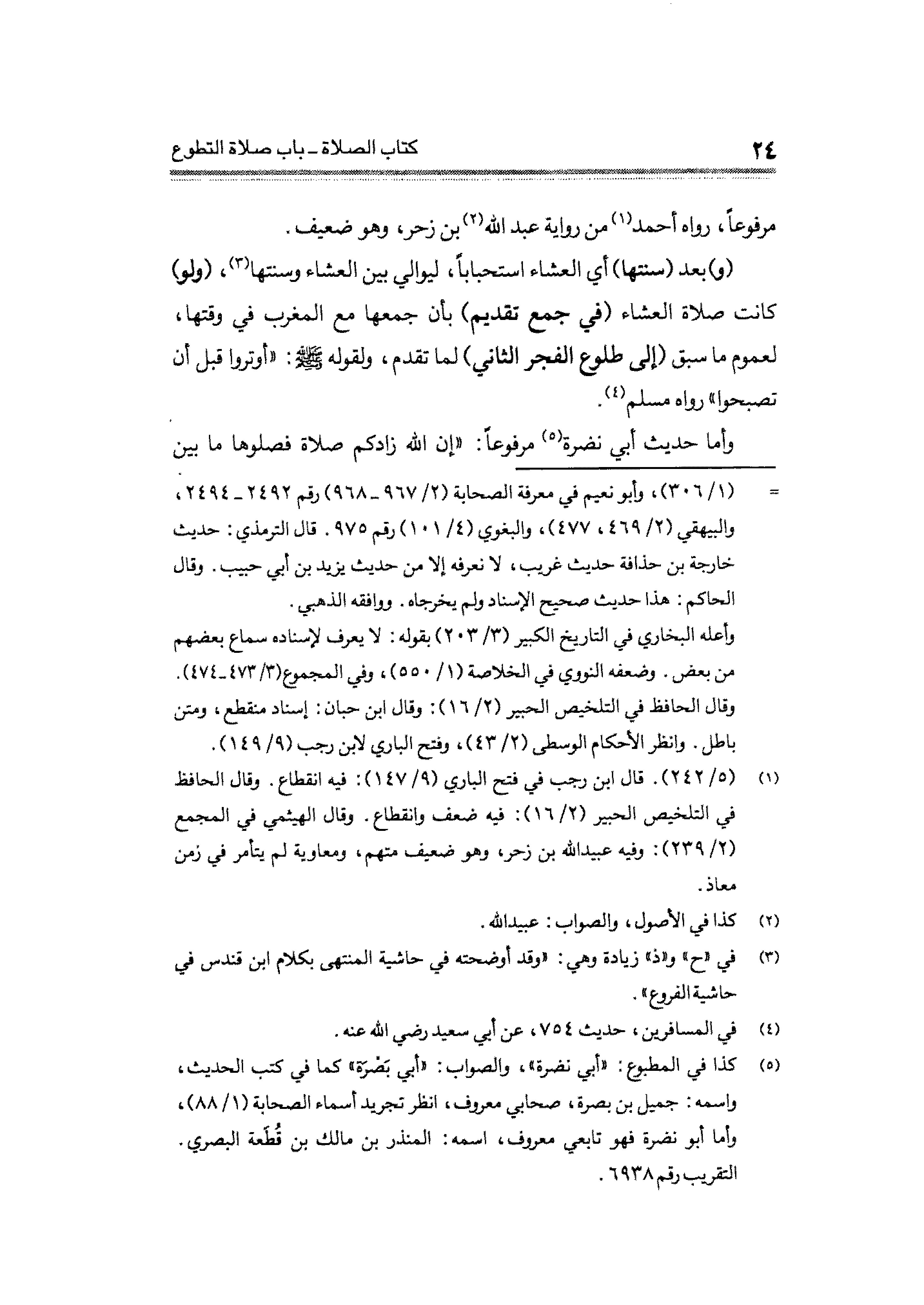 وأما حديث أبي نضرة (¬٥) مرفوعًا: "إن الله -زادكم-صلاة فصلوها. ما بين