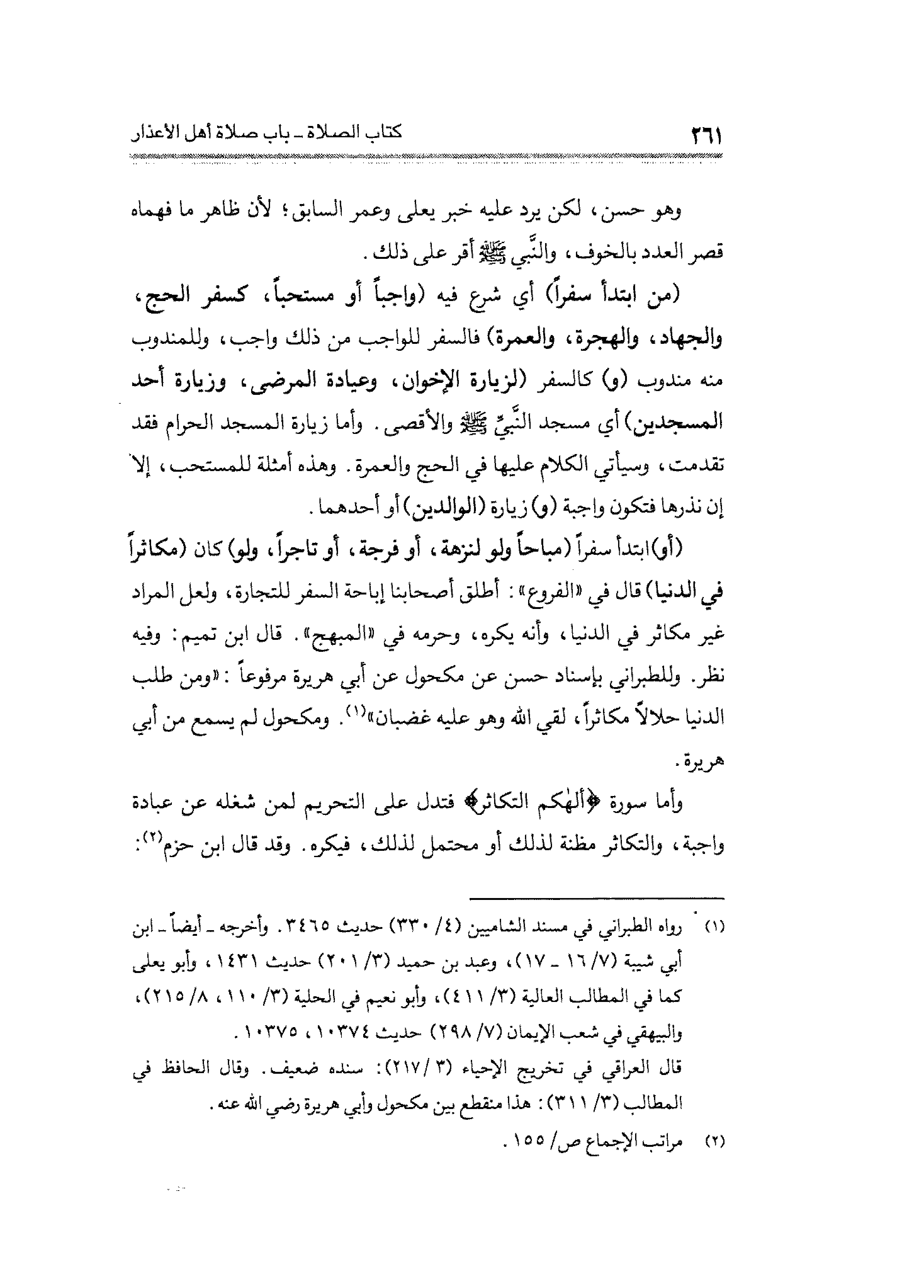 وأما سورة {أَلْهَاكُمُ التَّكَاثُرُ} فتدل على التحريم لمن شغله عن عبادة واجبة، والتكاثر مظنة لذلك أو محتمل لذلك، فيكره. وقد قال ابن حزم (¬٢):