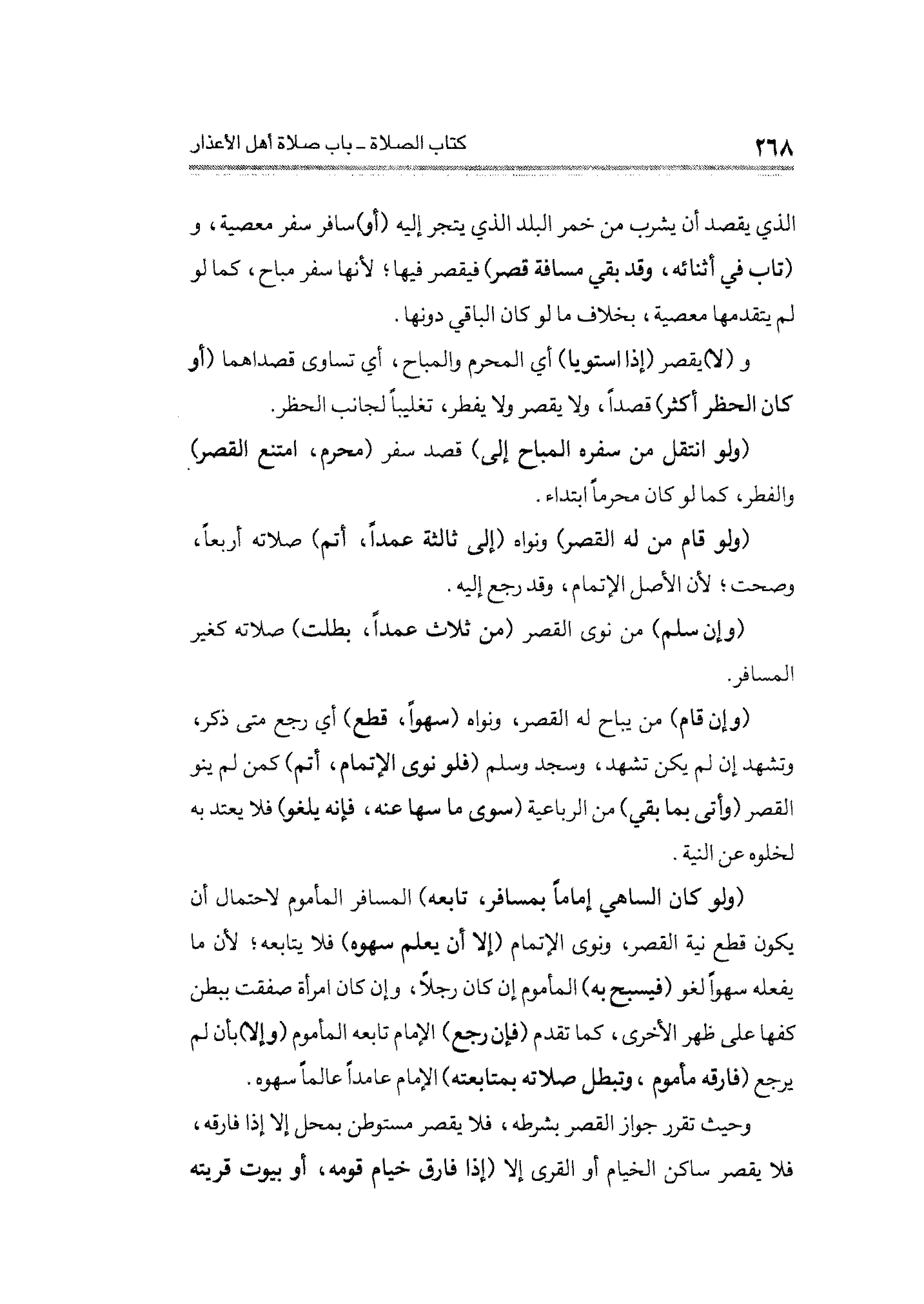 وحيث تقرر جواز القصر بشرطه، فلا يقصر مستوطن إلا إذا فارقه، فلا يقصر ساكن الخيام أو القرى إلا (إذا فارق خيام قومه، أو بيوت قريته