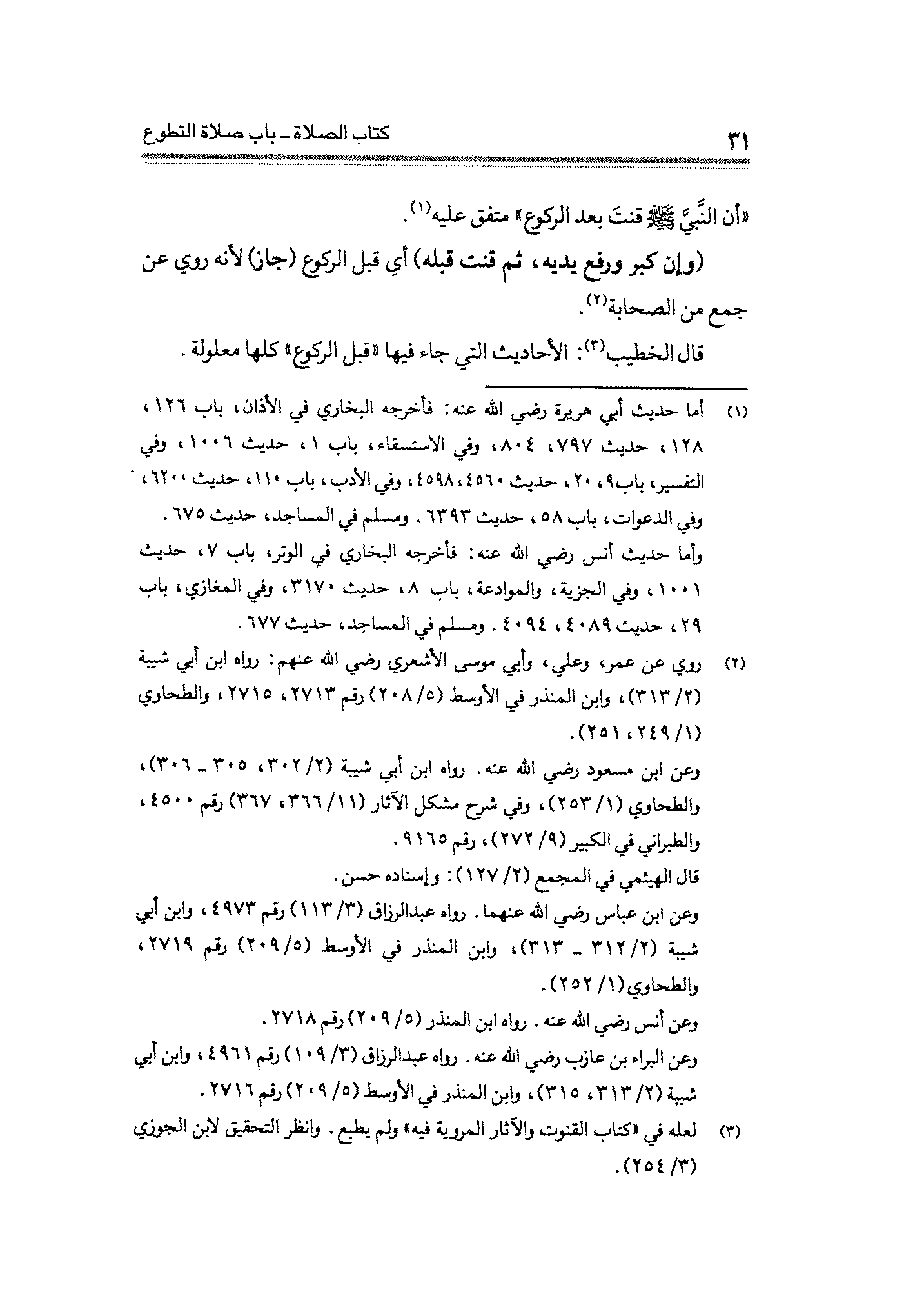 (¬٣) لعله في "كتاب القنوت والآثار المروية فيه" ولم يطبع. وانظر التحقيق لابن الجوزي (٣/ ٢٥٤).