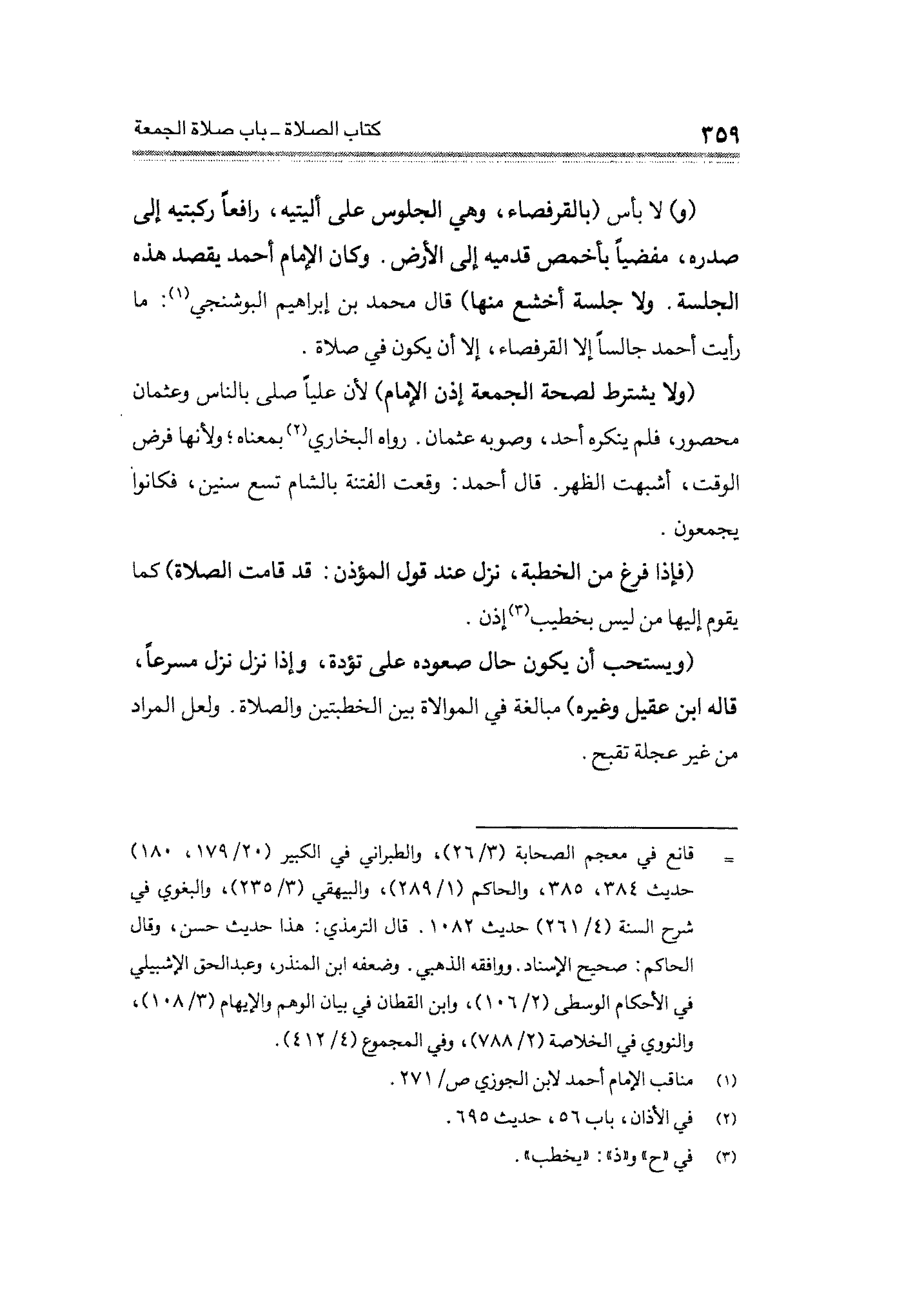 (و) لا بأس (بالقرفصاء، وهي الجلوس على أليتيه، رافعًا ركبتيه إلى صدره، مفضيًا بأخمص قدميه إلى الأرض، وكان الإمام أحمد يقصد هذه الجلسة. ولا جلسة أخشع منها) قال محمد بن إبراهيم البوشنجي (¬١): ما رأيت أحمد جالسًا إلا القرفصاء، إلا أن يكون في صلاة.