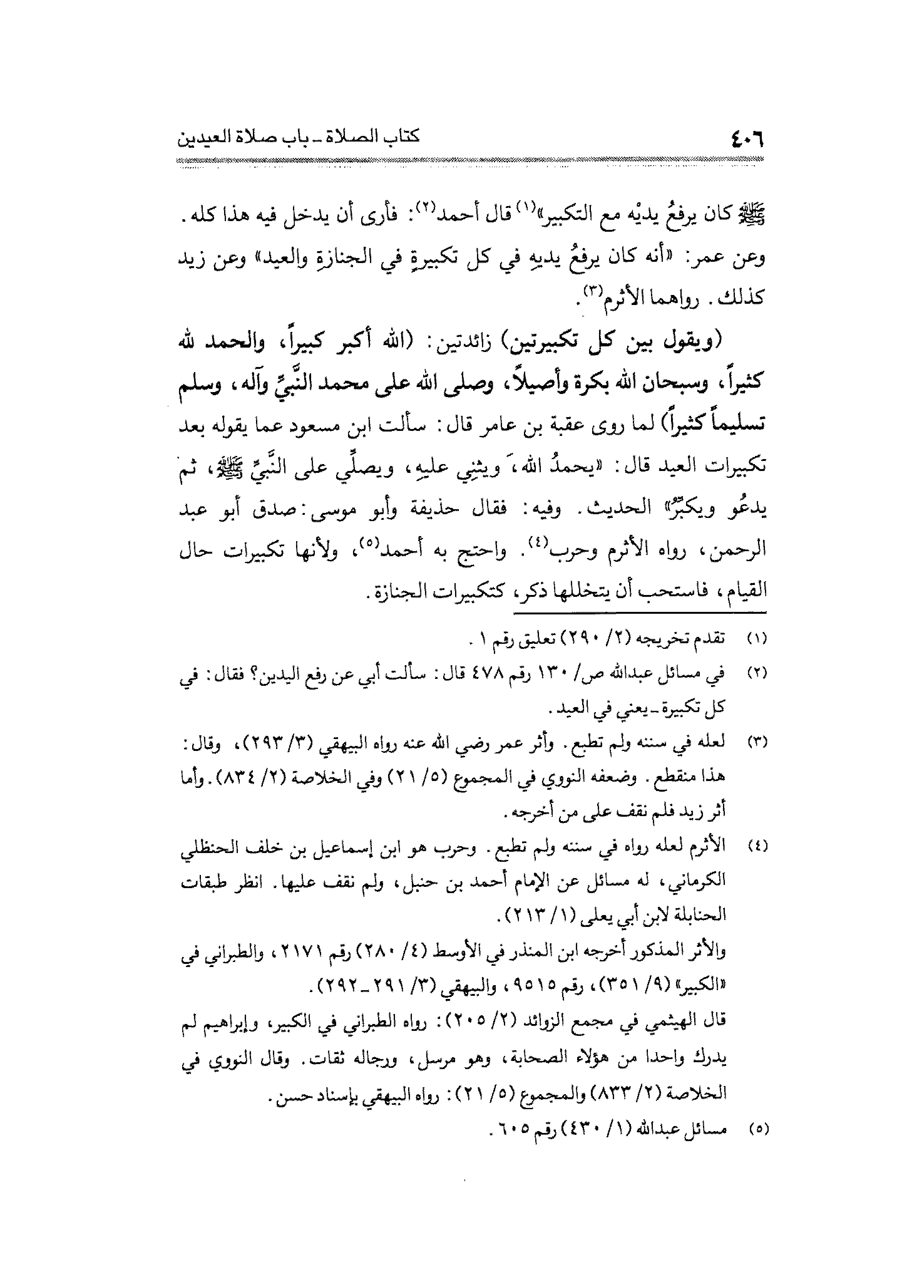 (¬٢) في مسائل عبد الله ص / ١٣٠ رقم ٤٧٨ قال: سألت أبي عن رفع اليدين؟ فقال: في كل تكبيرة -يعني في العيد.