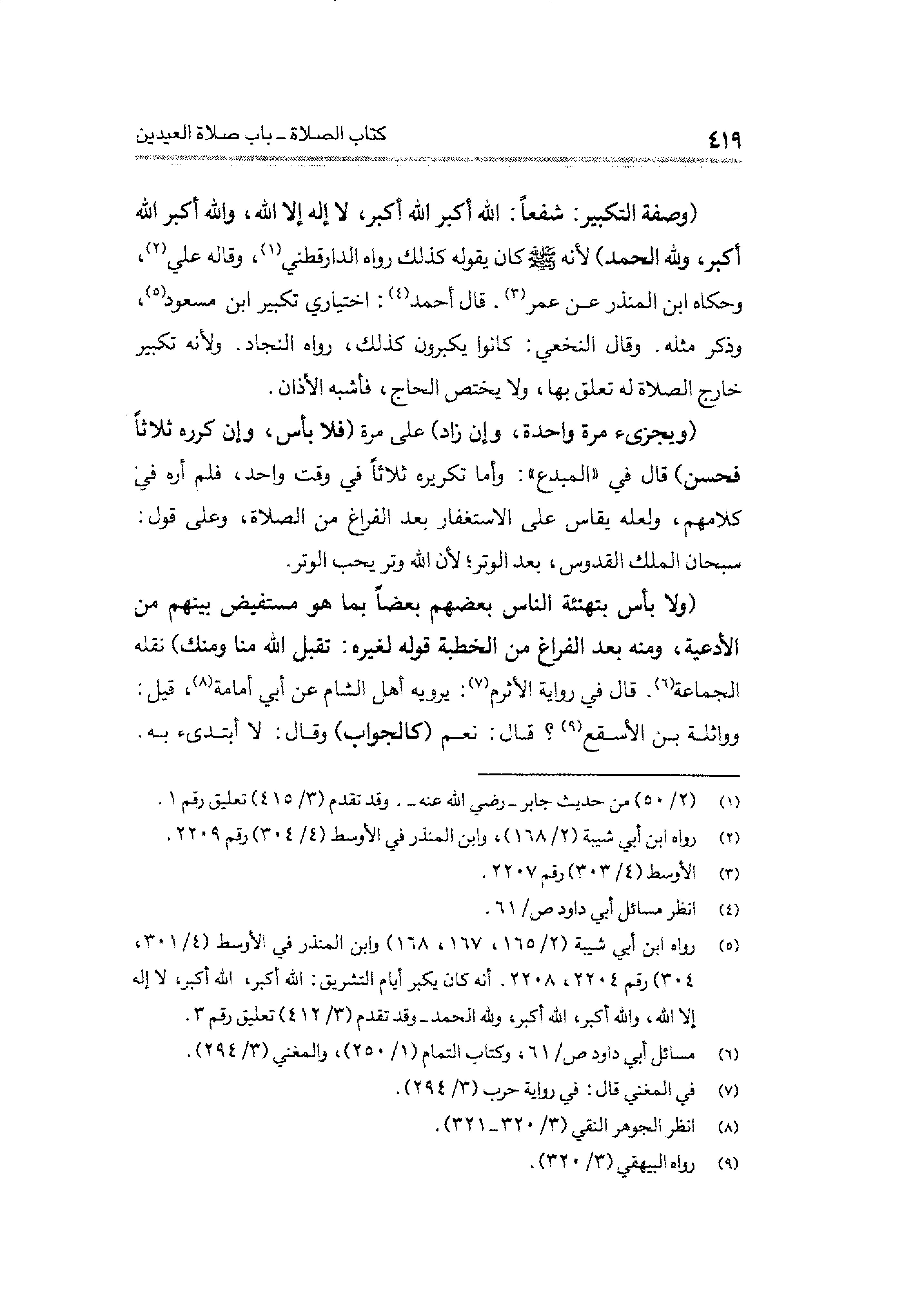 (¬٥) رواه ابن أبي شيبة (٢/ ١٦٥، ١٦٧، ١٦٨) وابن المنذر في الأوسط (٤/ ٣٠١، ٣٠٤) رقم ٢٢٠٤، ٢٢٠٨، أنه كان يكبر أيام التشريق: الله أكبر، الله أكبر، لا إله إلا الله، والله أكبر، الله أكبر، ولله الحمد- وقد تقدم (٣/ ٤١٢) تعليق رقم ٣.