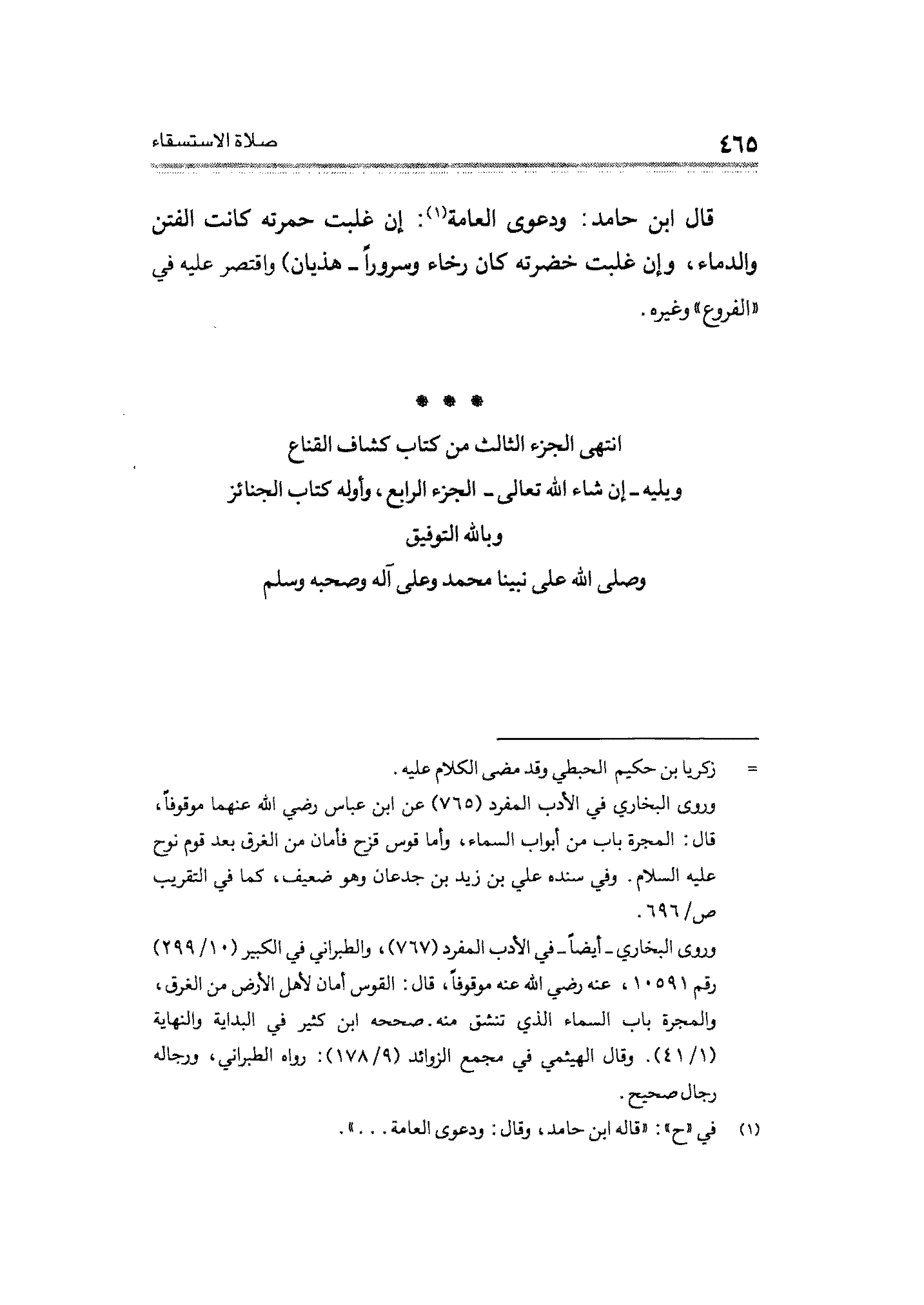 انتهى الجزء الثالث من كتاب كشاف القناع ويليه -إن شاء الله تعالى- الجزء الرابع، وأوله كتاب الجنائز وبالله التوفيق