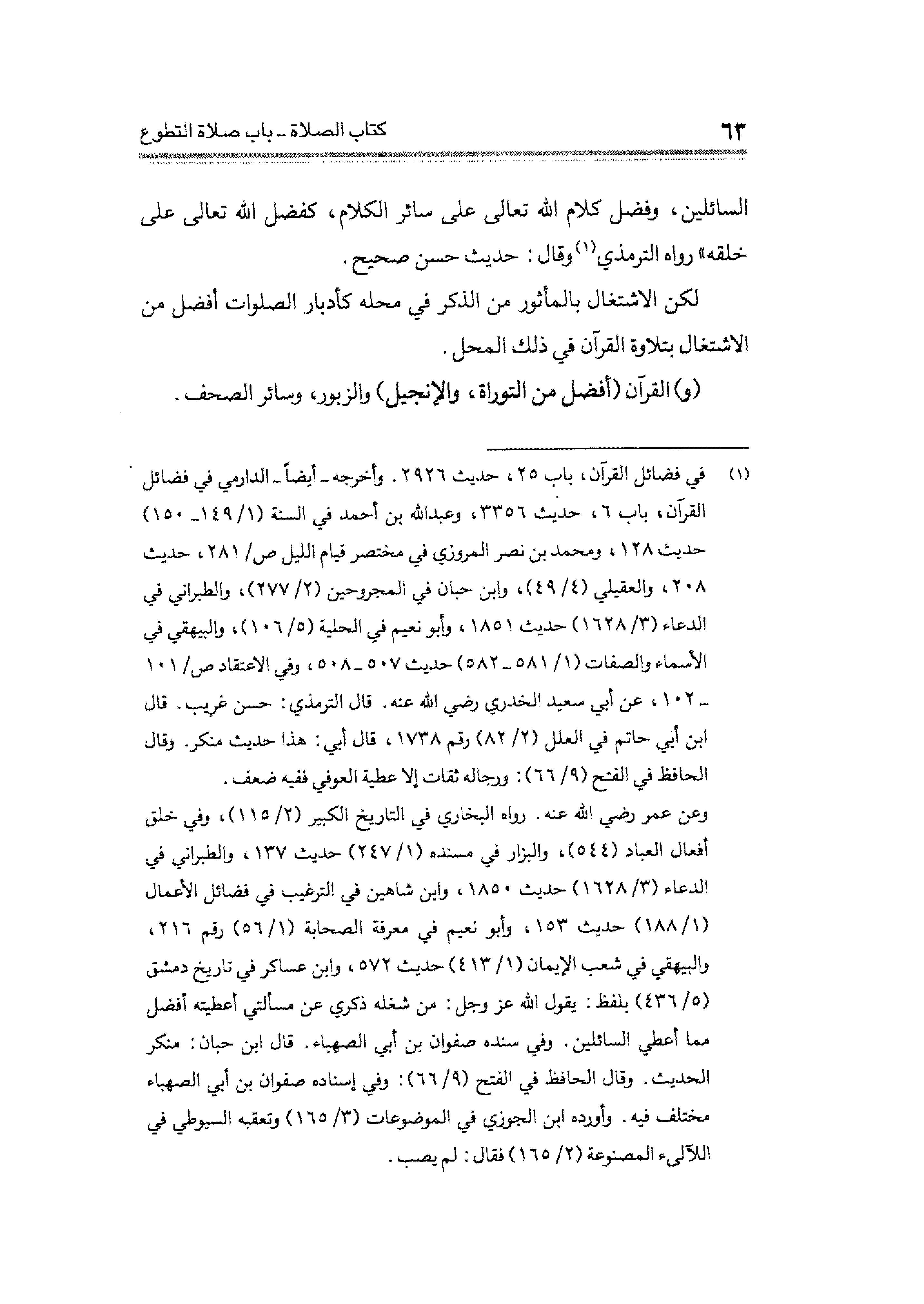 السائلين وفضل كلام الله تعالى على سائر الكلام، كفضل الله تعالى على خلقه" رواه الترمذي (¬١) وقال: حديث حسن صحيح.