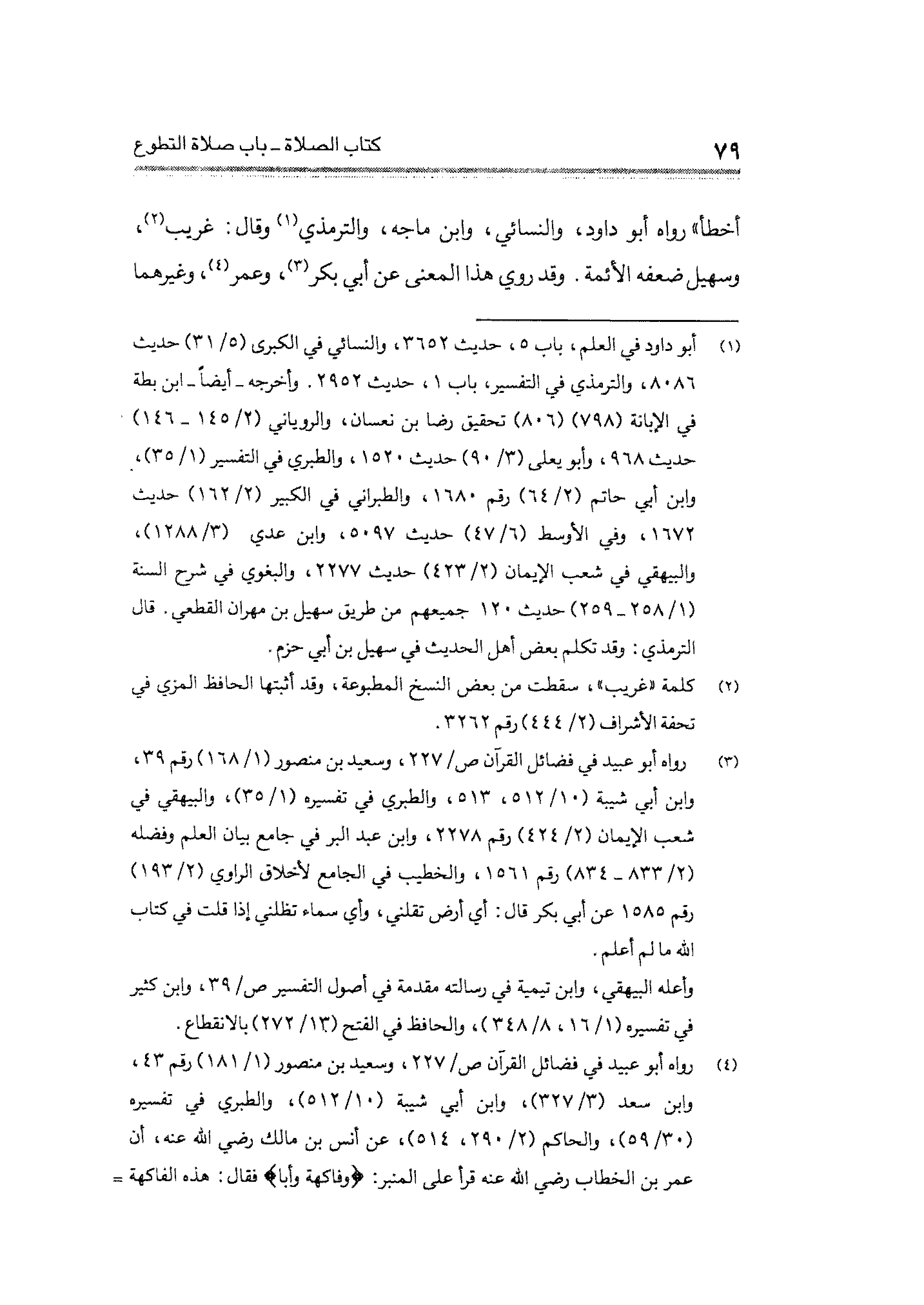 أخطأ" رواه أبو داود، والنسائي، وابن ماجه، والترمذي (¬١) وقال: غريب (¬٢)، وسهيل ضعفه الأئمة. وقد روي هذا المعنى عن أبي بكر (¬٣)، وعمر (¬٤)، وغيرهما