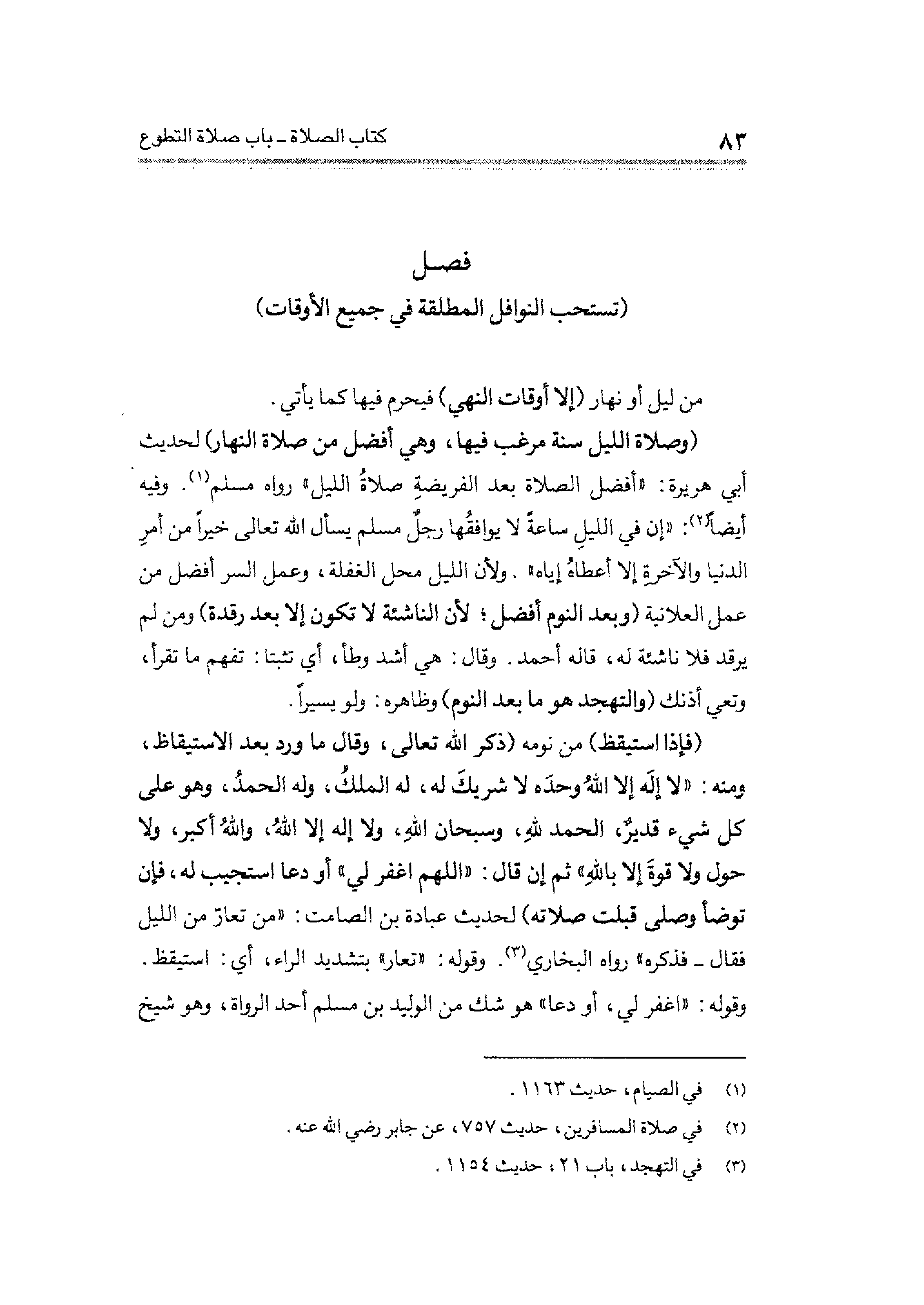 فصل (تستحب النوافل المطلقة في جميع الأوقات)