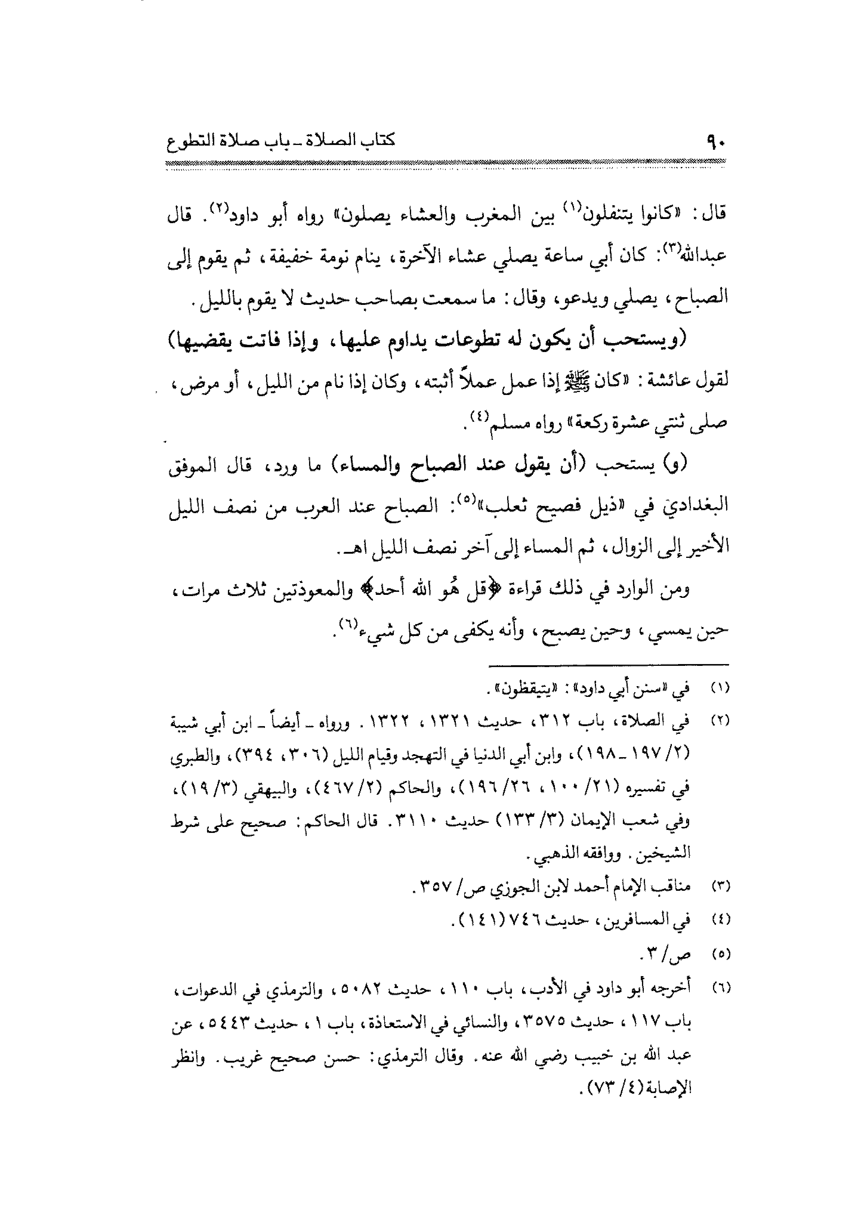 (¬٦) أخرجه أبو داود في الأدب، باب ١١٠، حديث ٥٠٨٢، والترمذي في الدعوات، باب ١١٧، حديث ٣٥٧٥ والنسائي في الاستعاذة، باب ١، حديث ٥٤٤٣، عن عبد الله بن خبيب -رضي الله عنه-. وقال الترمذي: حسن صحيح غريب. وانظر الإصابة (٤/ ٧٣).
