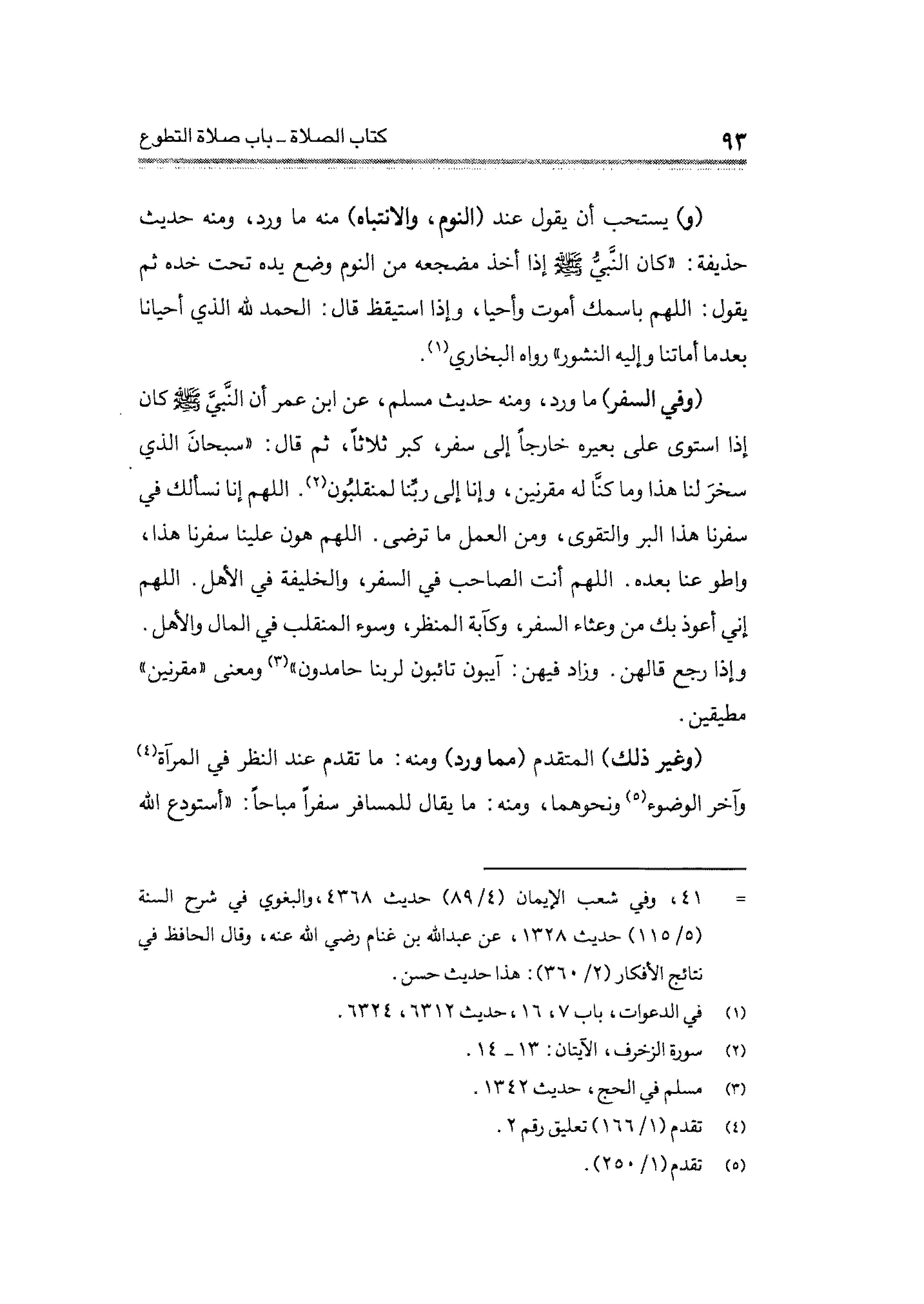(وغير ذلك) المتقدم (مما ورد) ومنه: ما تقدم عند النظر في المرآة (¬٤) وآخر الوضوء (¬٥) ونحوهما، ومنه: ما يقال للمسافر سفرًا مباحًا: "أستودع الله