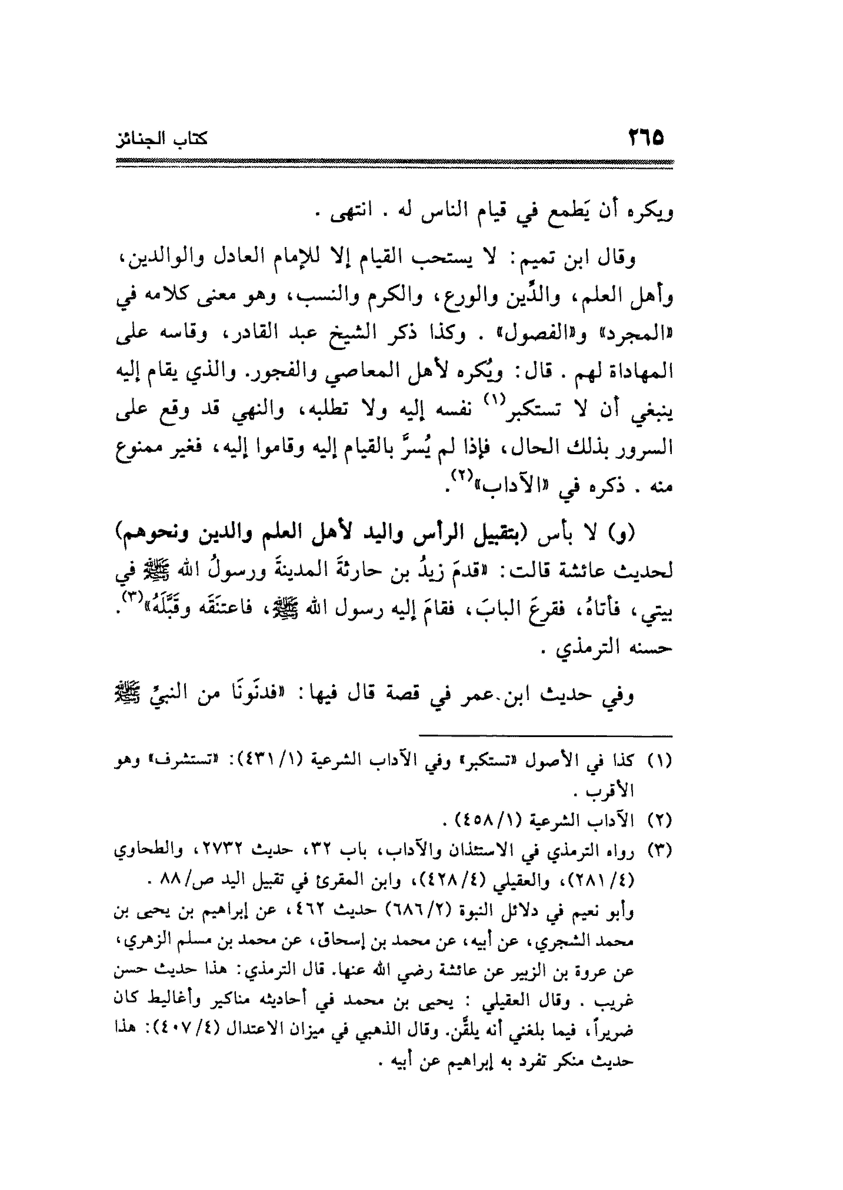 (¬٣) رواه الترمذي في الاستئذان والآداب، باب ٣٢، حديث ٢٧٣٢، والطحاوي (٤/ ٢٨١)، والعقيلي (٤/ ٤٢٨)، وابن المقرئ في تقبيل اليد ص/٨٨.