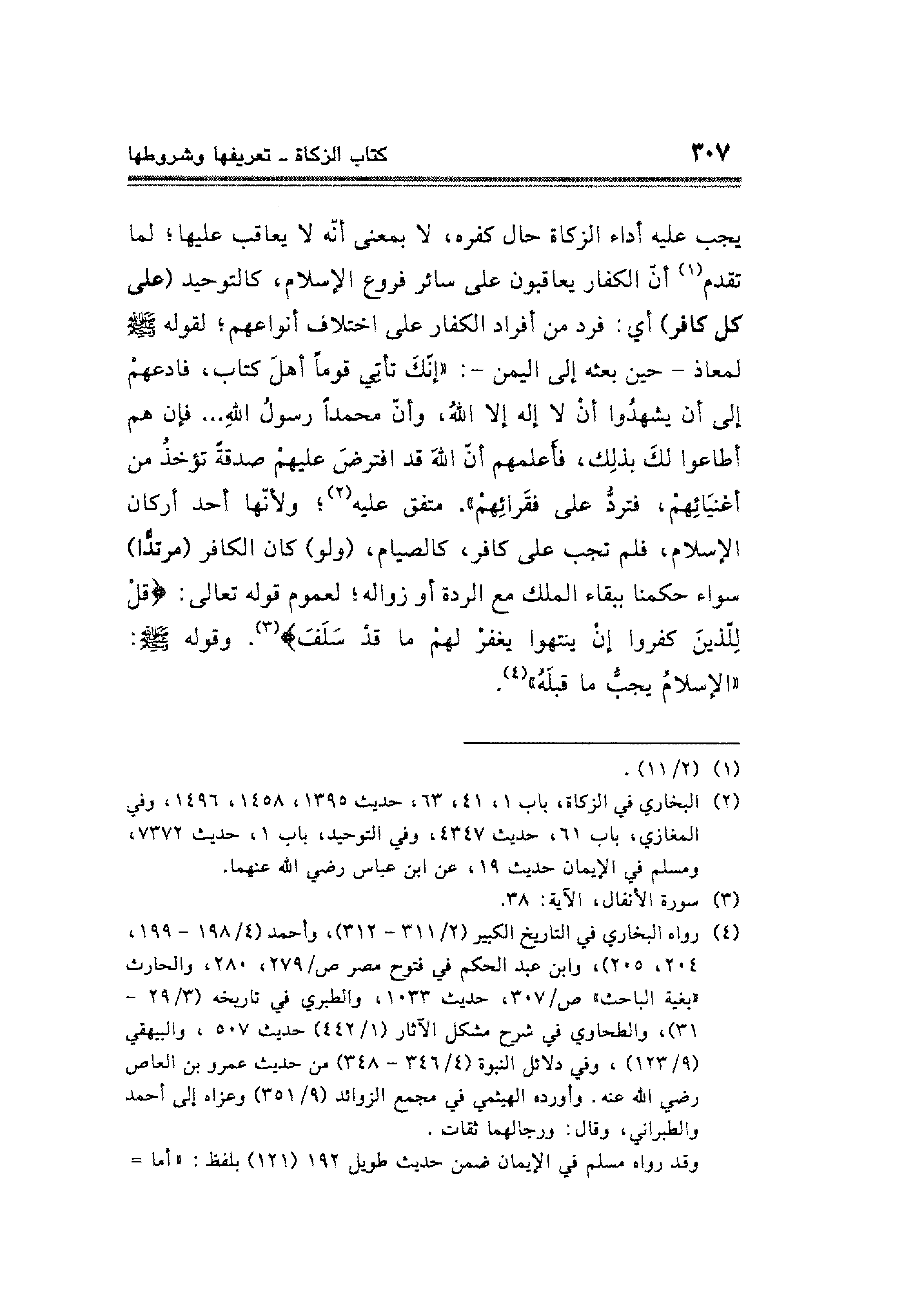 (¬٢) البخاري في الزكاة، باب ١، ٤١، ٦٣، حديث ١٣٩٥، ١٤٥٨، ١٤٩٦، وفى المغازي، باب ٦١، حديث ٤٣٤٧، وفي التوحيد، باب ١ حديث ٧٣٧٢، ومسلم في الإيمان حديث ١٩، عن ابن عباس رضي الله عنهما.