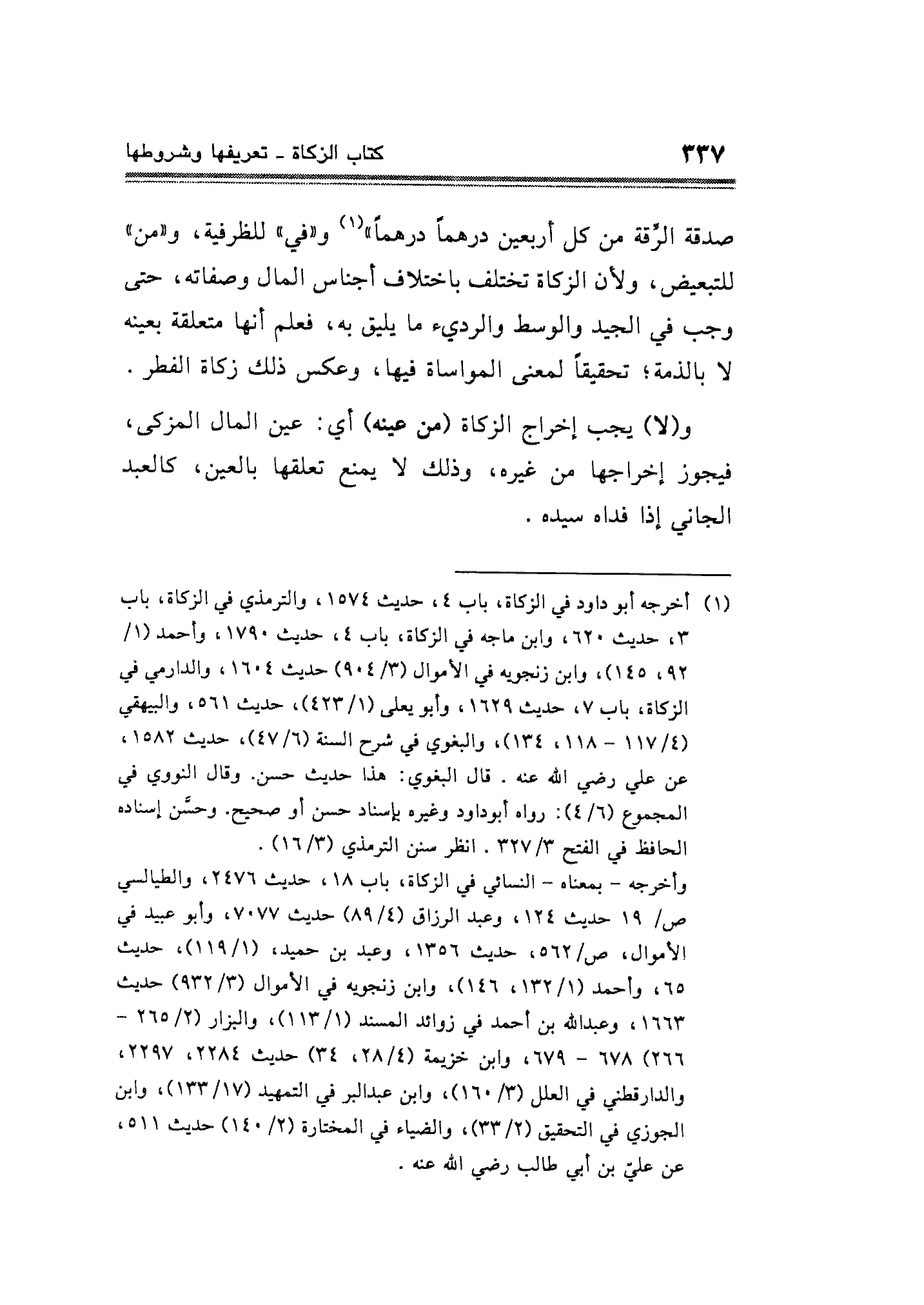 (¬١) أخرجه أبو داود في الزكاة، باب ٤، حديث ١٥٧٤، والترمذي في الزكاة، باب ٣، حديث ٦٢٠، وابن ماجه في الزكاة، باب ٤، حديث ١٧٩٠، وأحمد (١/ ٩٢، ١٤٥)، وابن زنجويه في الأموال (٣/ ٩٠٤) حديث ١٦٠٤، والدارمي فى الزكاة، باب ٧، حديث ١٦٢٩، وأبو يعلى (١/ ٤٣٣)، حديث ٥٦١، والبيهقي (٤/ ١١٧ - ١١٨، ١٣٤)، البغوي في شرح السنة (٦/ ٤٧)، حديث ١٥٨٢، عن علي رضي الله عنه. قال البغوي: هذا حديث حسن. وقال النووي في المجموع (٦/ ٤): رواه أبو داود وغيره، بإسناد حسن أو صحيح. وحسن إسناده الحافظ في الفتح ٣/ ٣٢٧. انظر سنن الترمذي (٣/ ١٦).