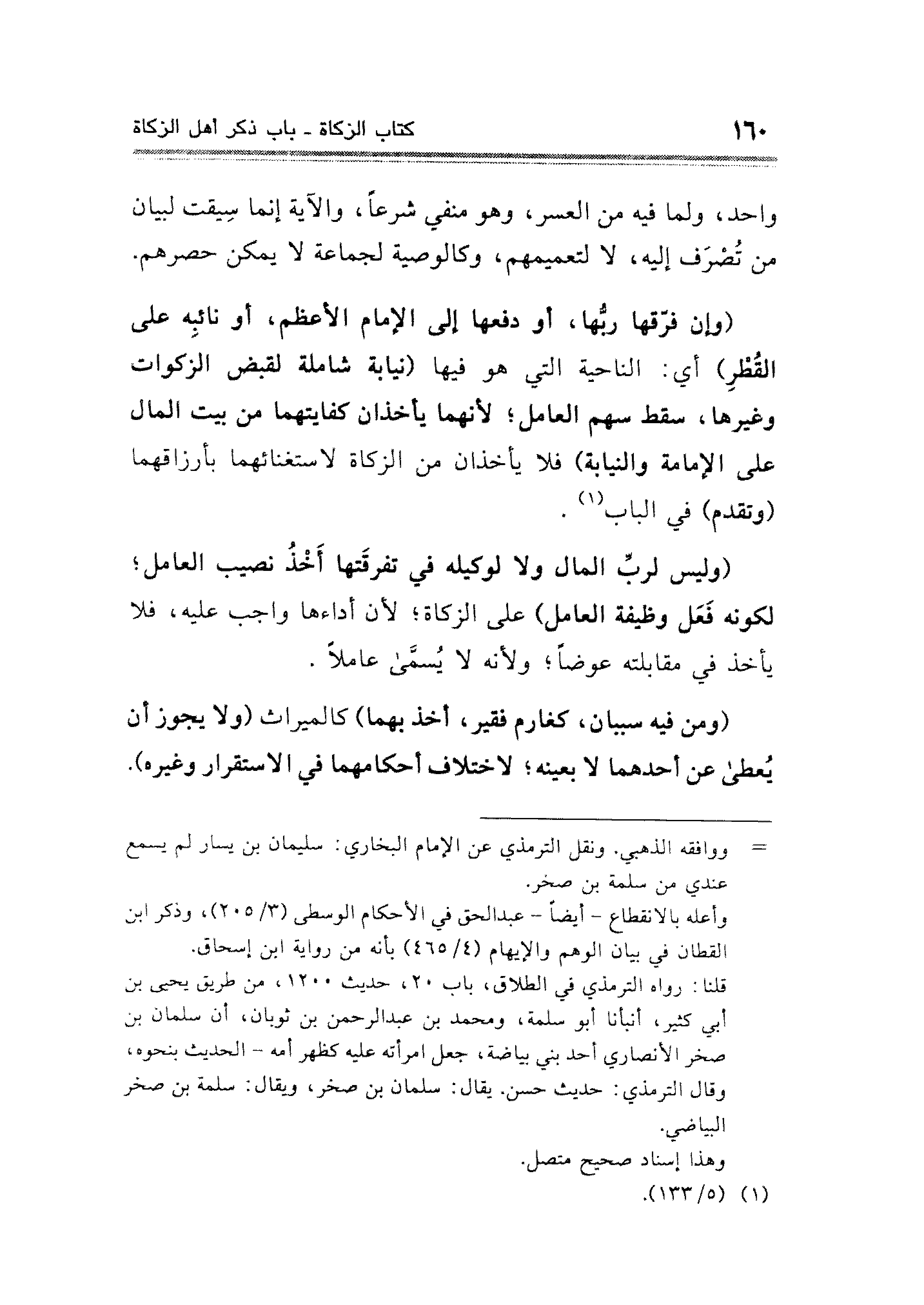 (وإن فرّقها ربُّها، أو دفعها إلى الإمام الأعظم، أو نائبِه على القُطْرِ) أي: الناحية التي هو فيها (نيابة شاملة لقبض الزكوات وغيرها، سقط سهم العامل؛ لأنهما يأخذان كفايتهما من بيت المال على الإمامة والنيابة) فلا يأخذان من الزكاة لاستغنائهما بأرزاقهما (وتقدم) في الباب (¬١).
