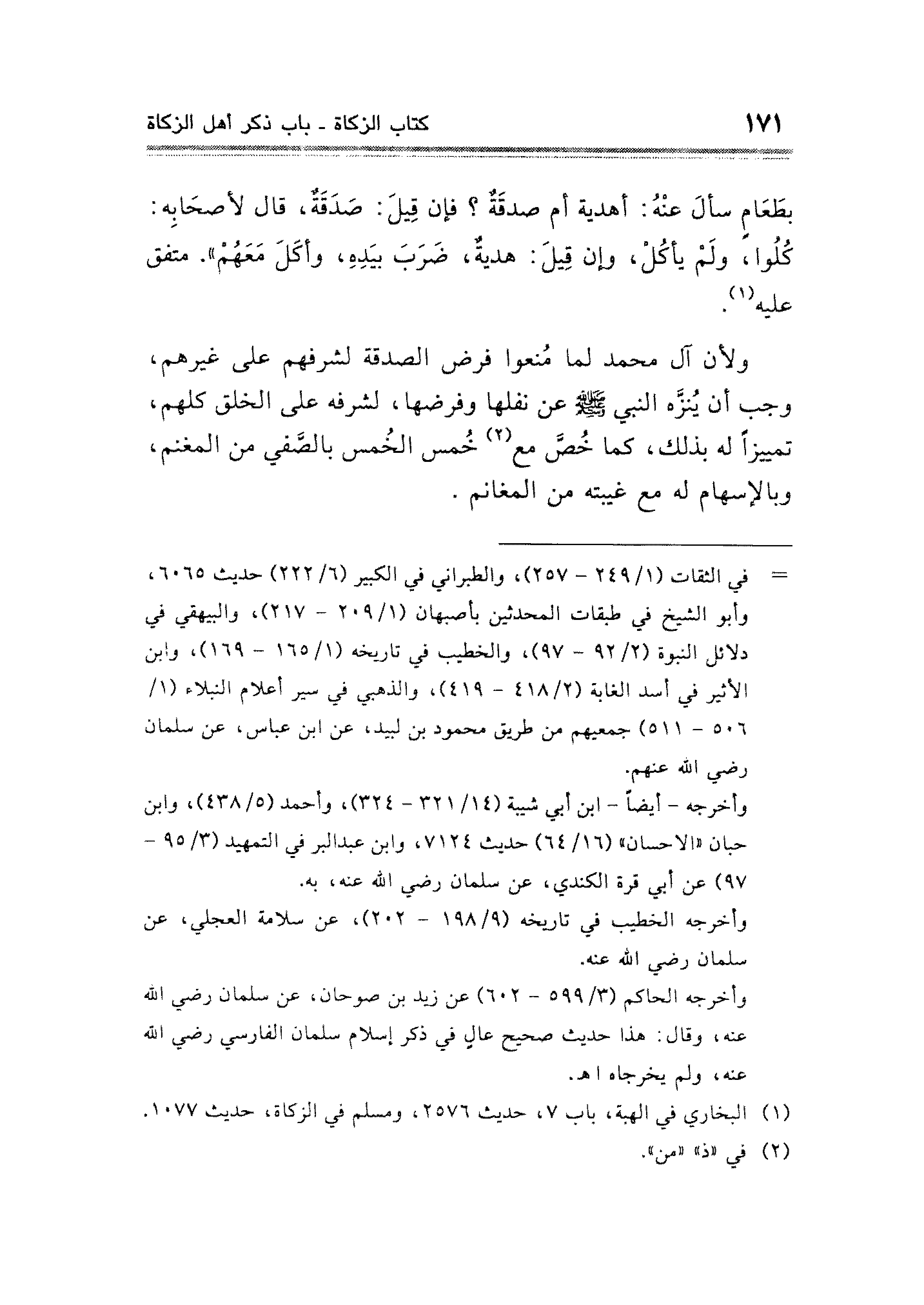 (¬١) البخاري في الهبة، باب ٧، حديث ٢٥٧٦، ومسلم في الزكاة، حديث ١٠٧٧.