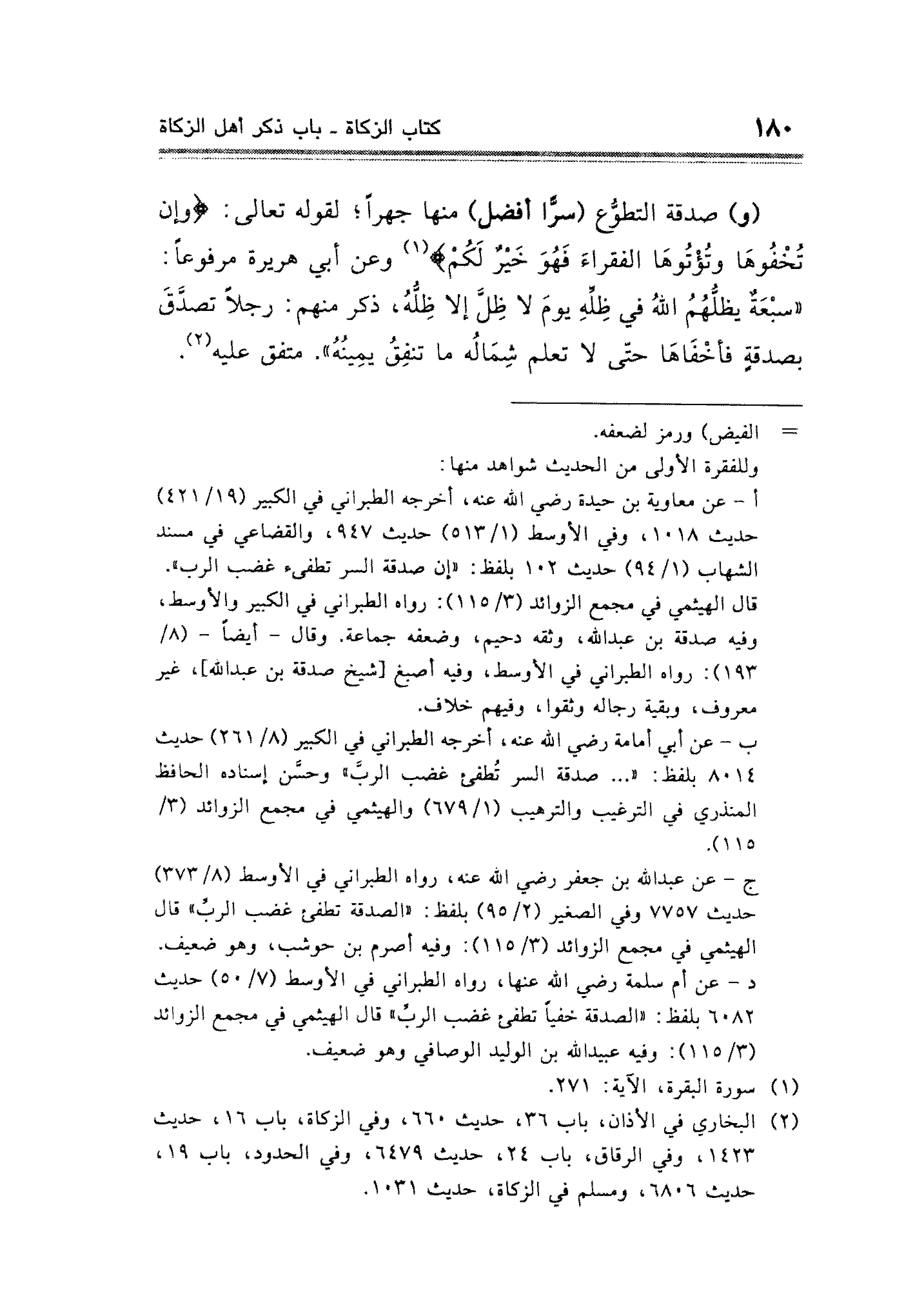 (¬٢) البخاري في الأذان، باب ٣٦، حديث ٦٦٠، وفي الزكاة، باب ١٦، حديث ١٤٢٣، وفي الرقاق، باب ٢٤، حديث ٦٤٧٩، وفي الحدود، باب ١٩، حديث ٦٨٠٦، ومسلم في الزكاة، حديث ١٠٣١.