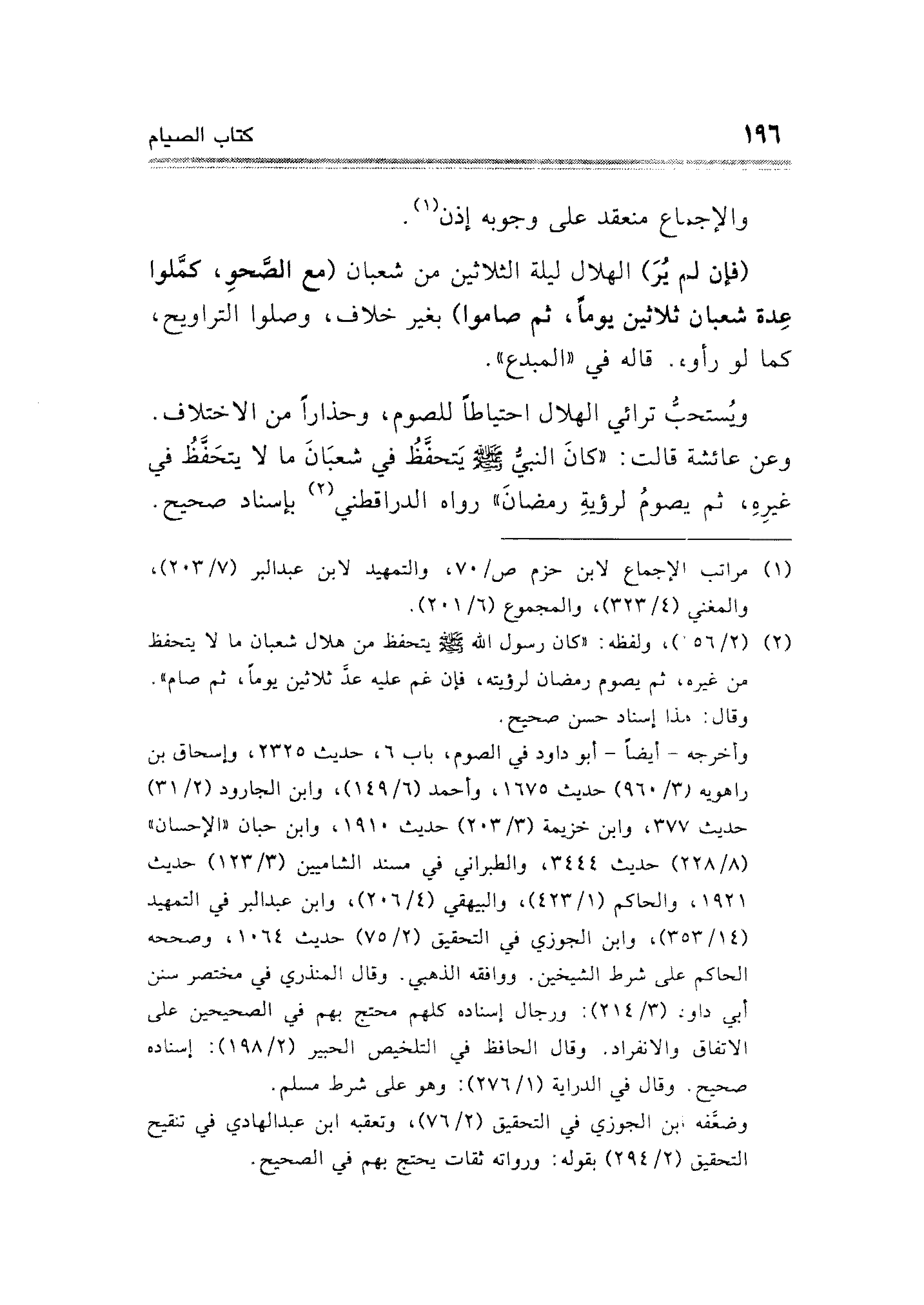 (¬٢) (٢/ ٦٥٦)، ولفظه: "كان رسول الله - صلى الله عليه وسلم - يتحفظ من هلال شعبان ما لا يتحفظ من غيره، ثم يصوم رمضان لرؤيته، فإن غم عليه عدَّ ثلاثين يومًا، ثم صام".