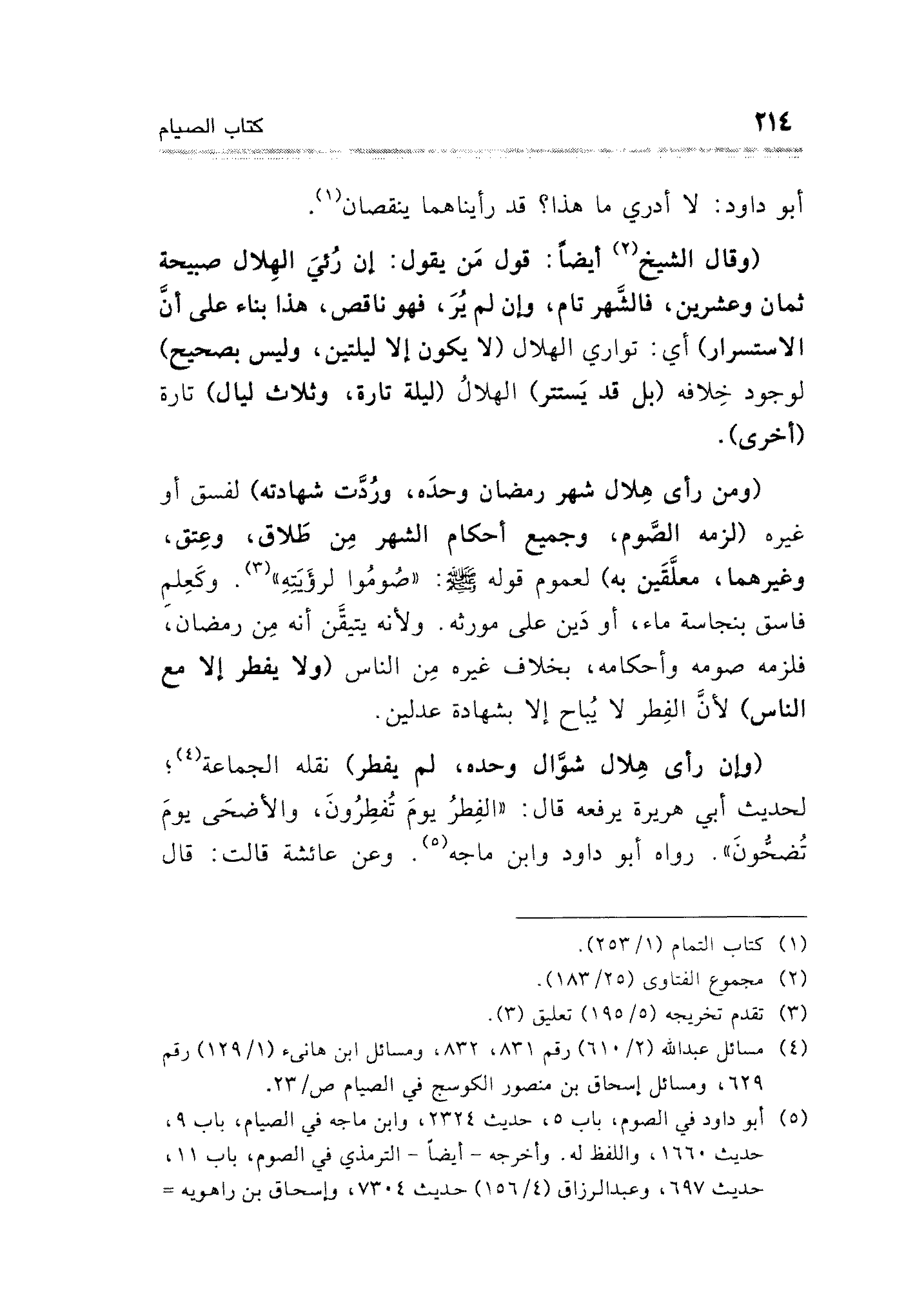 أبو داود: لا أدري ما هذا؟ قد رأْيناهما ينقصان (¬١).